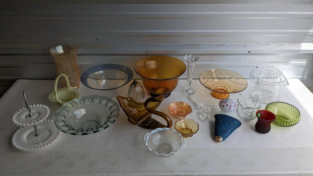 a beautiful array of varied decade art glass pieces. All in great shape. No shipping. 2616