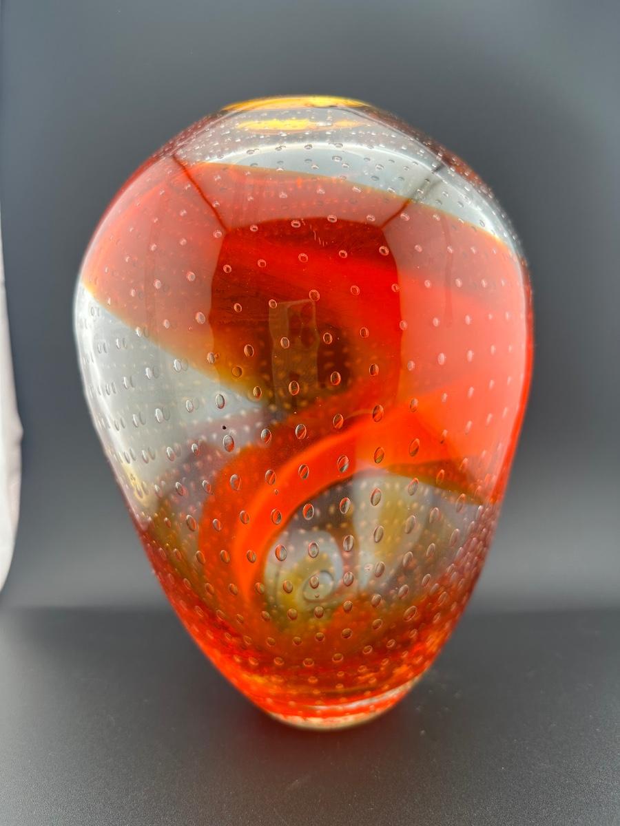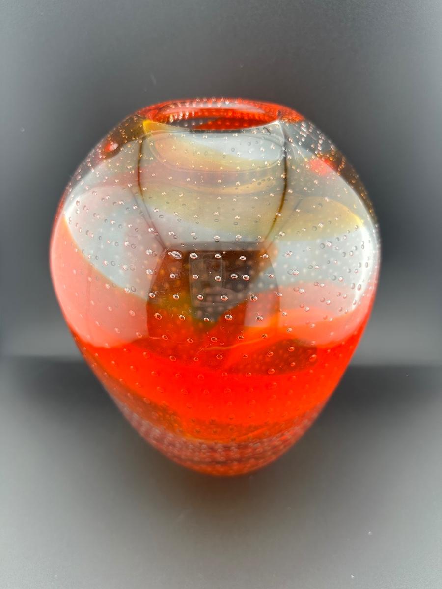 Art Glass Amberina Controlled Bubbles Large 10” Vase