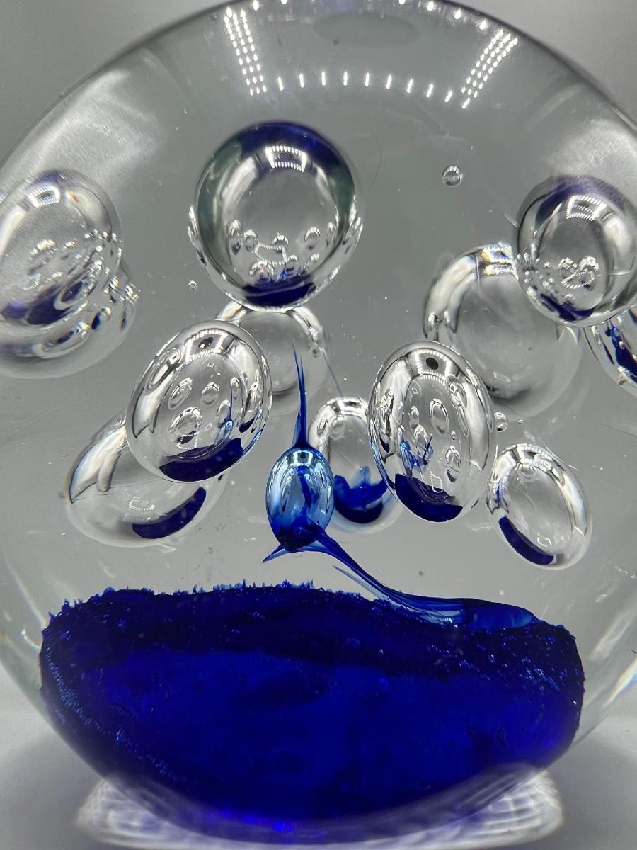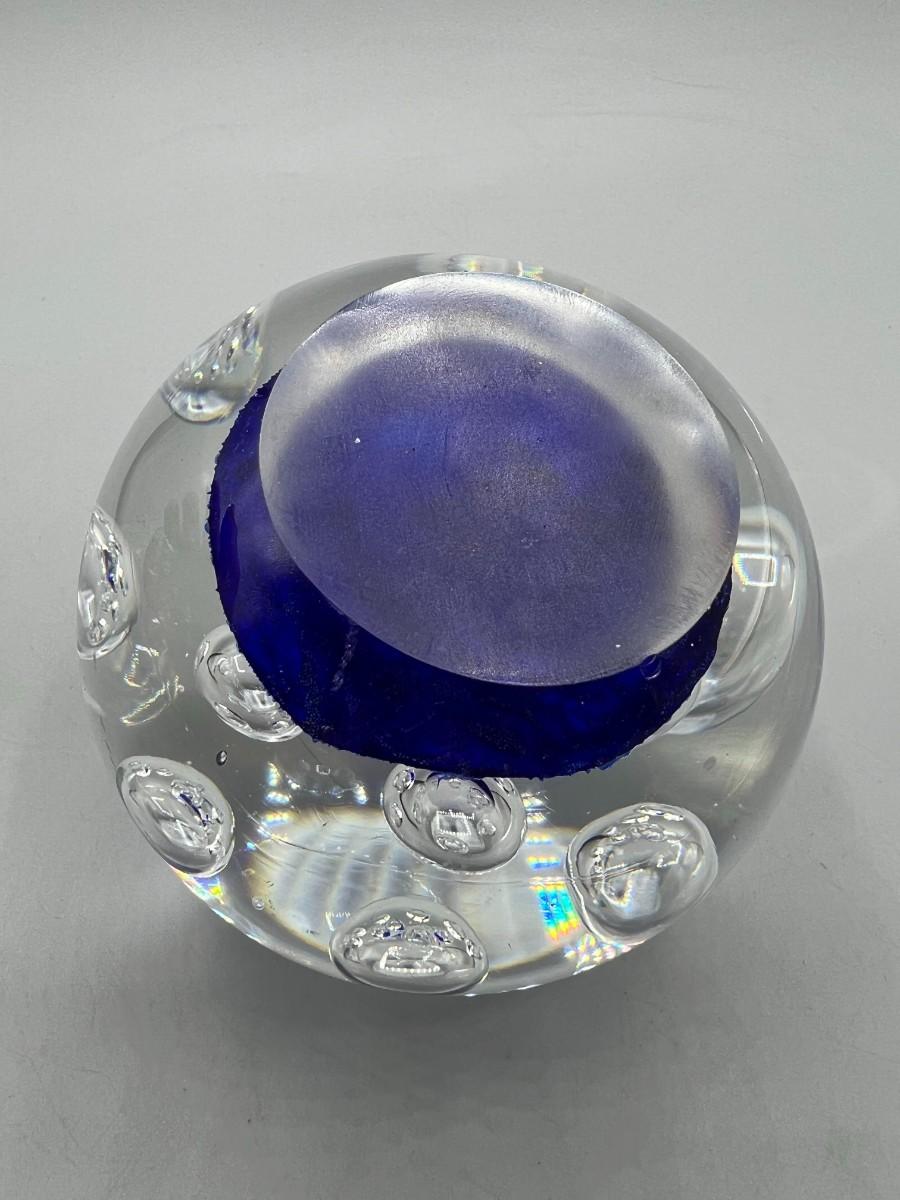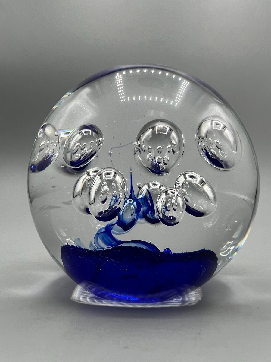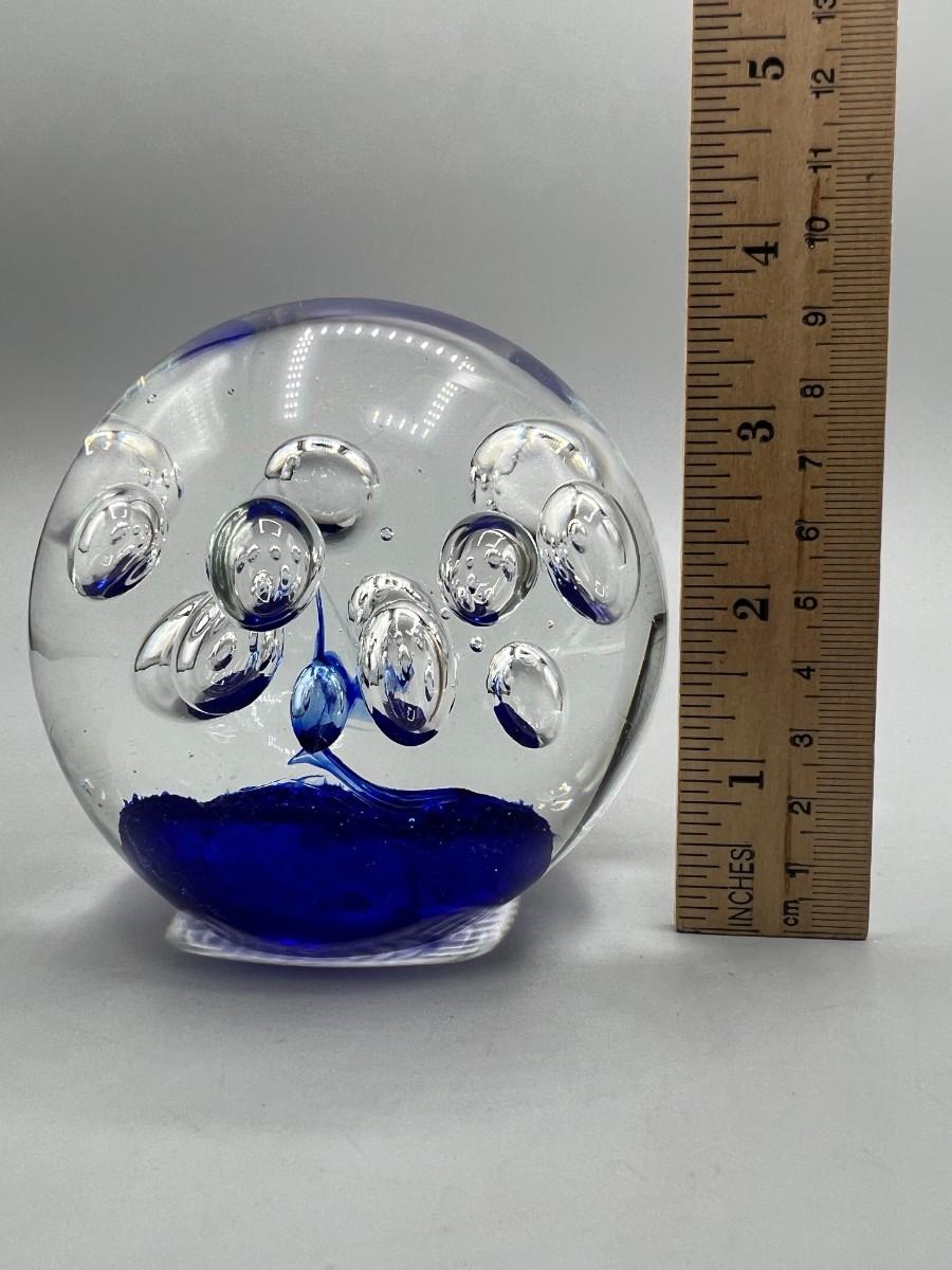 Art Glass Blue Bubble Round Sphere Paper Weight
