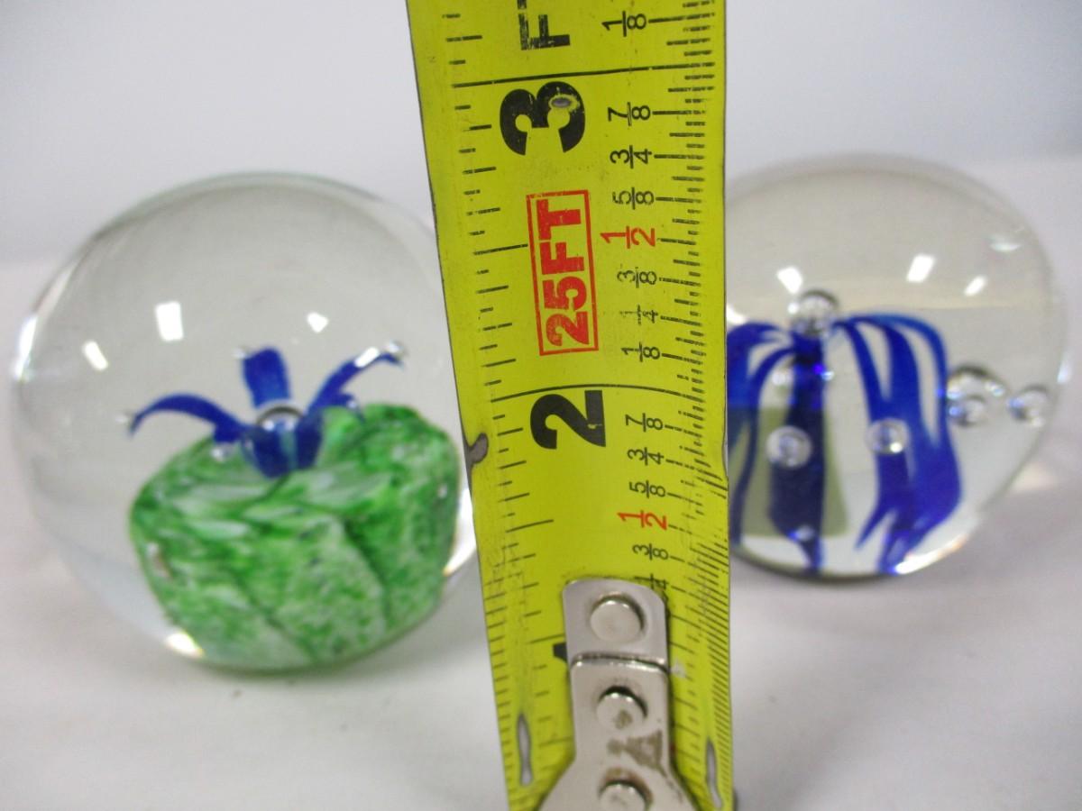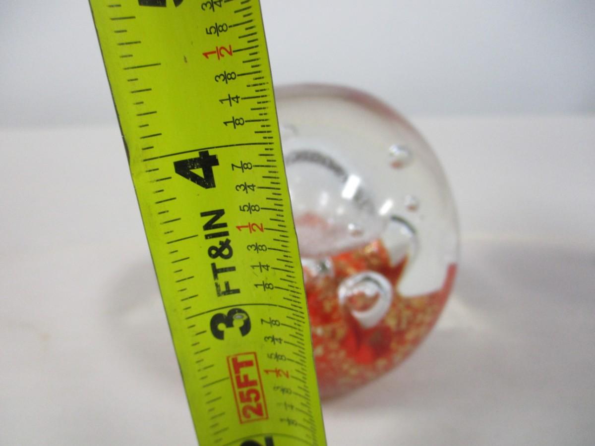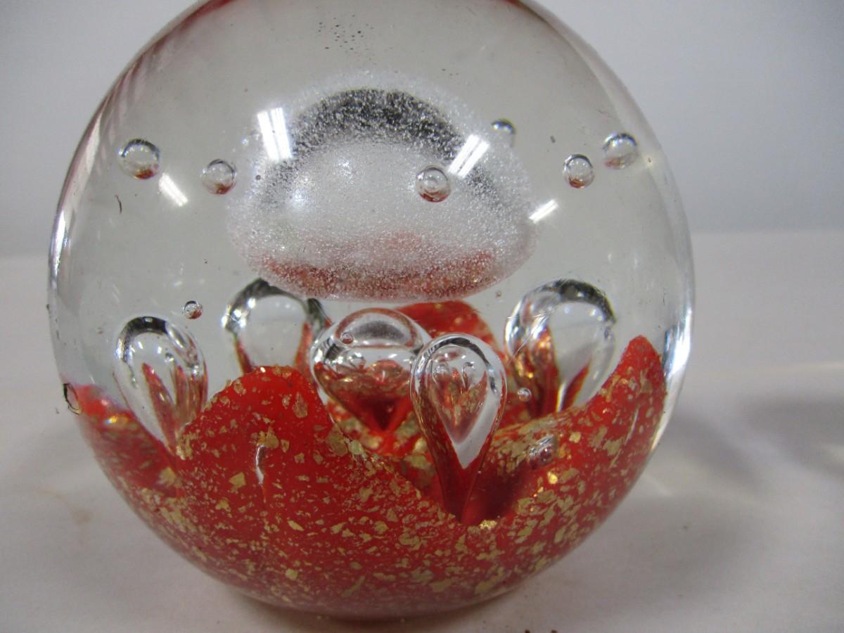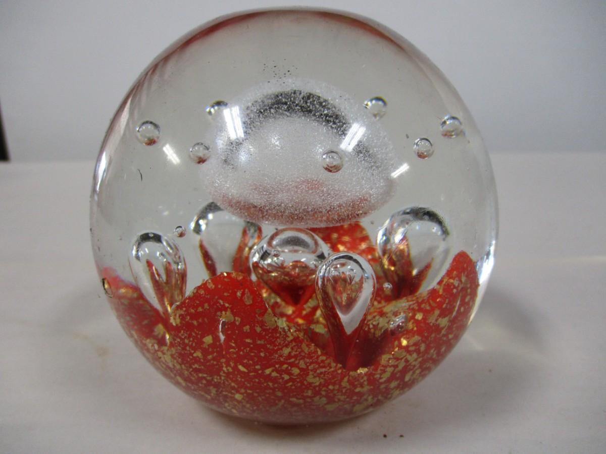 Art Glass Controlled Bubbles With Gold Flecks & Floral Paperweights