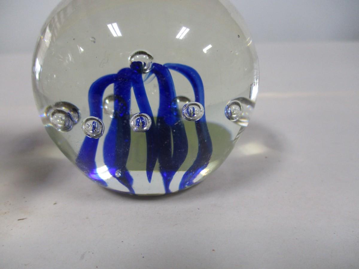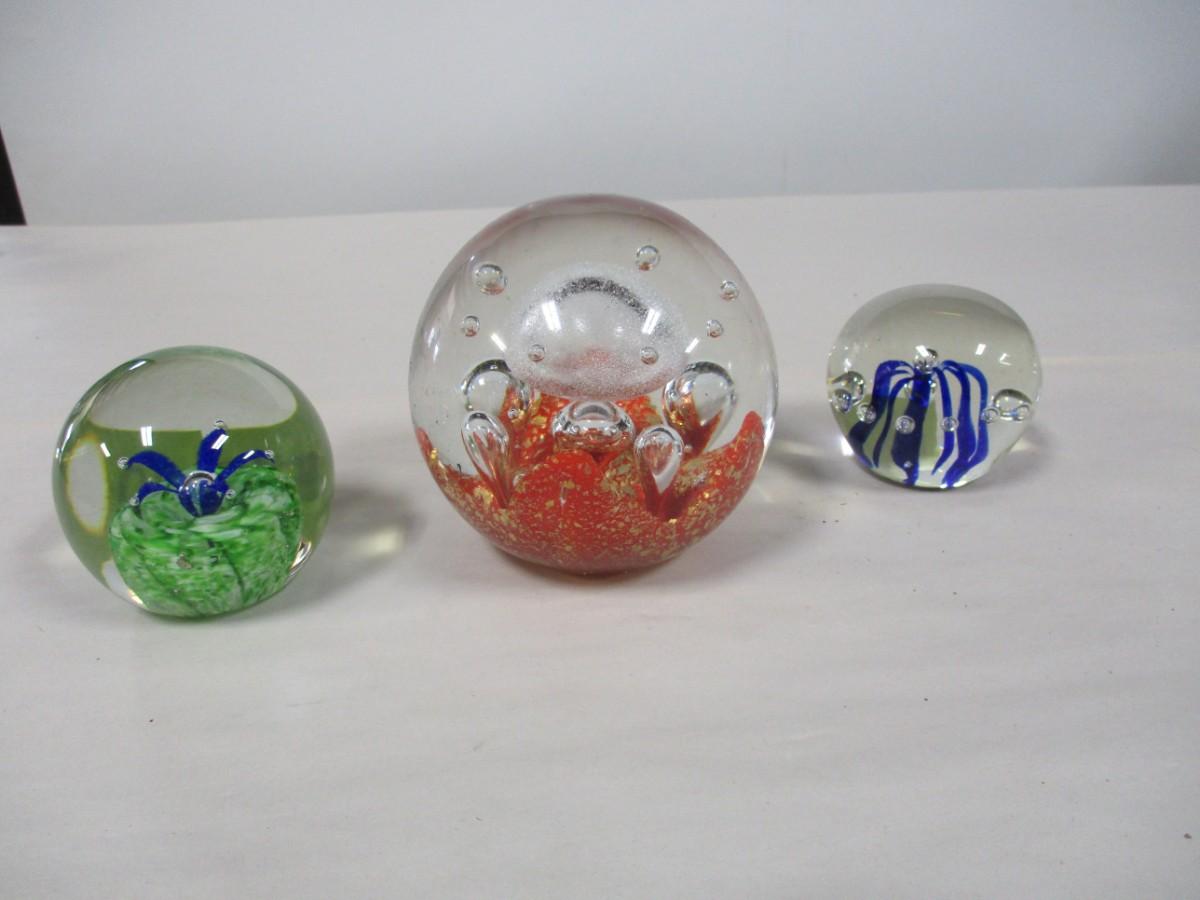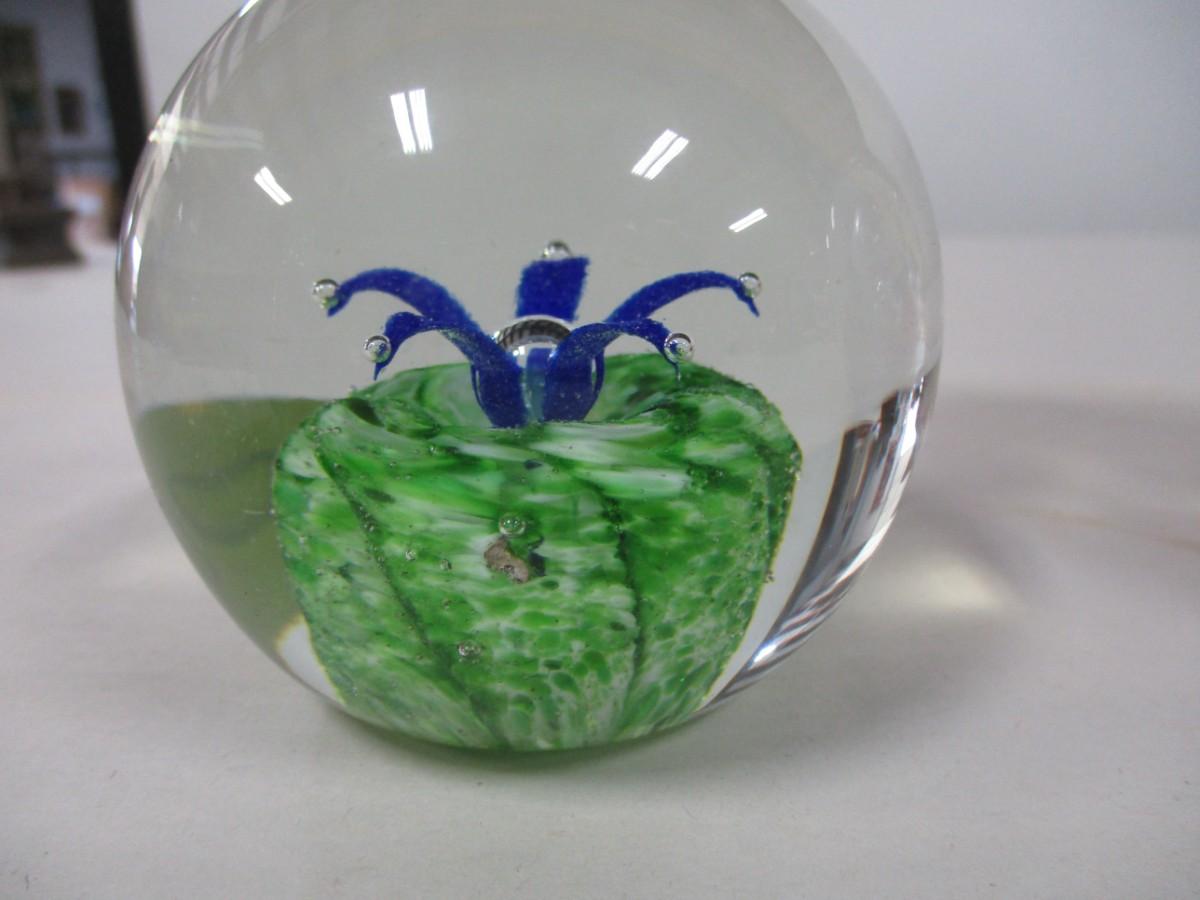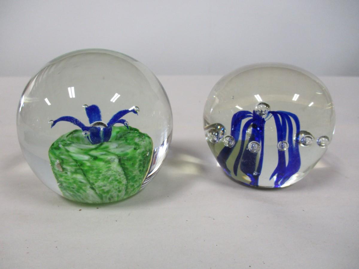 Art Glass Controlled Bubbles With Gold Flecks & Floral Paperweights