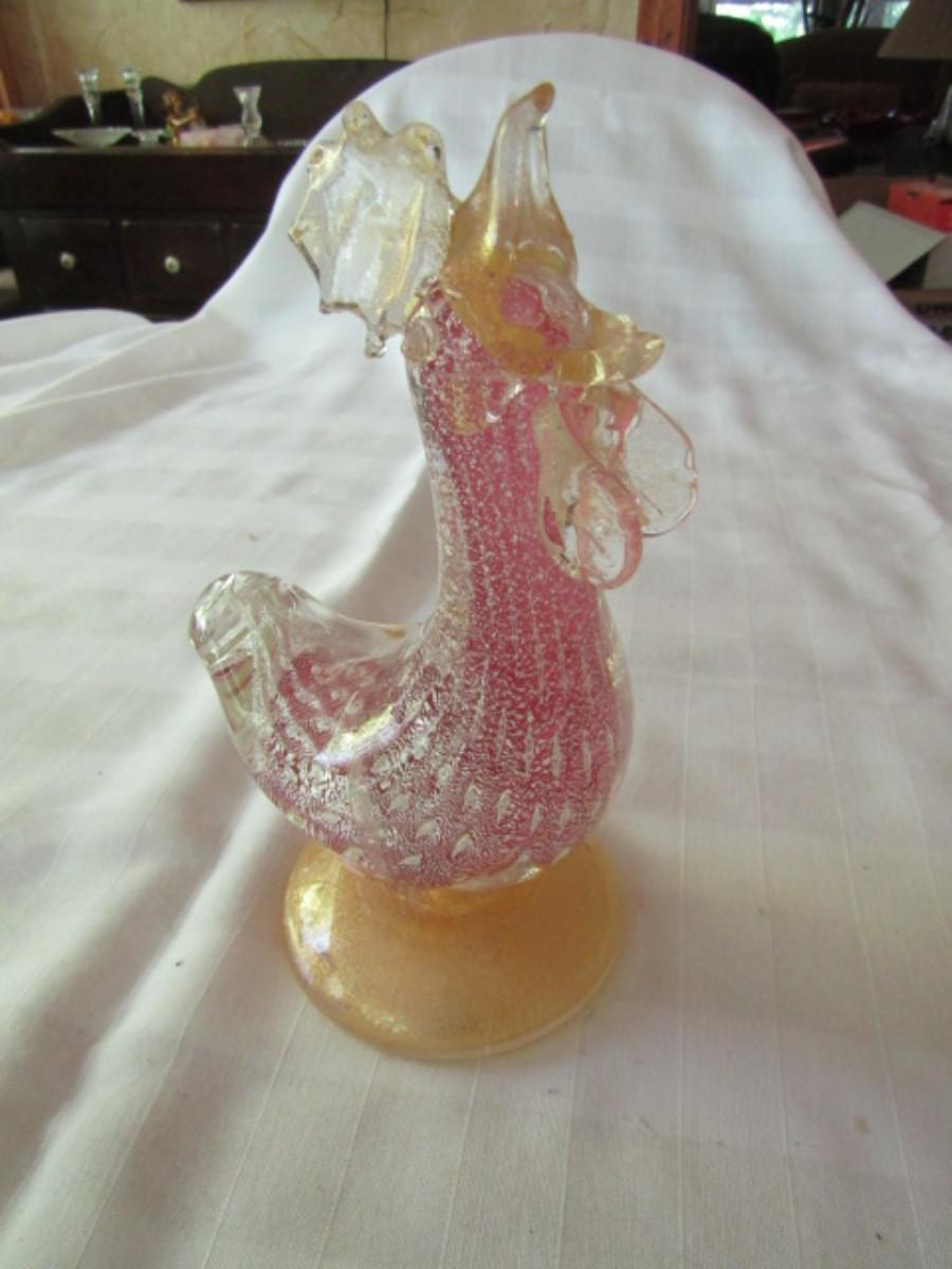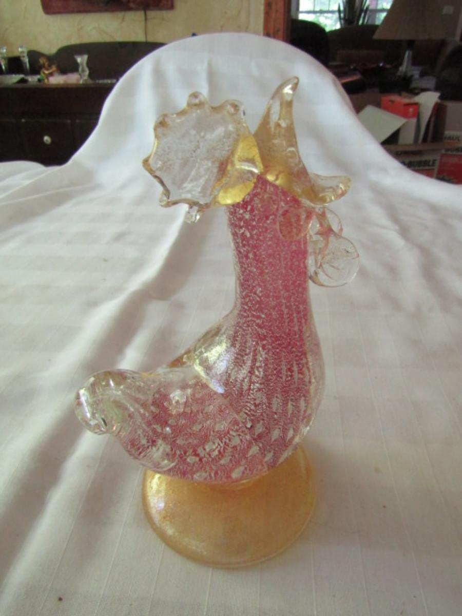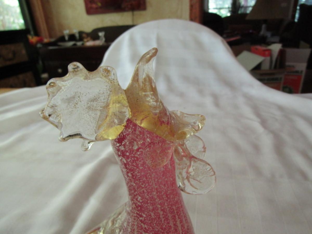 Art Glass Crowing Rooster. Please see all pictures- piece has what appears to be a crack, but may be a ridge from when it was made.