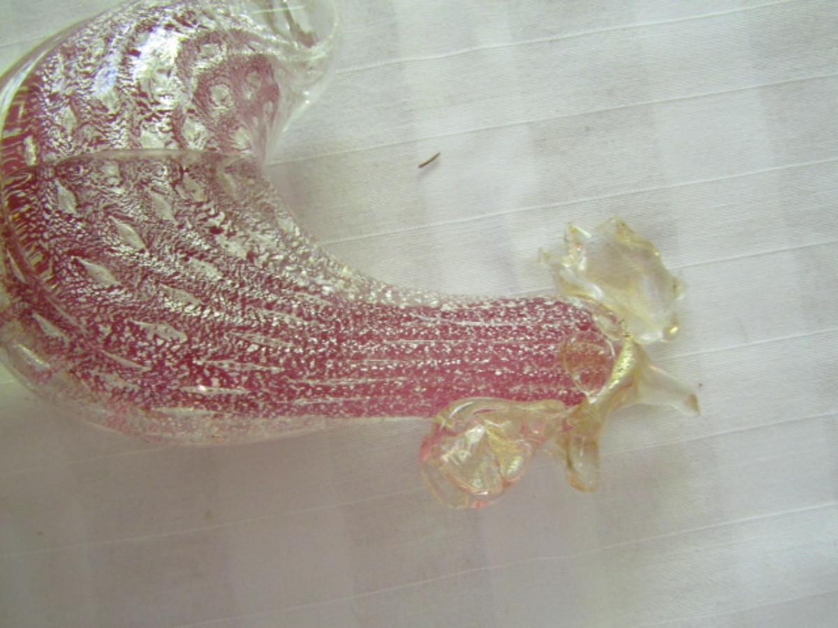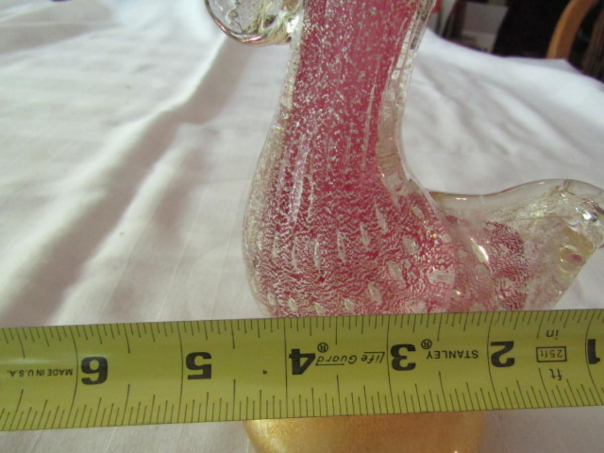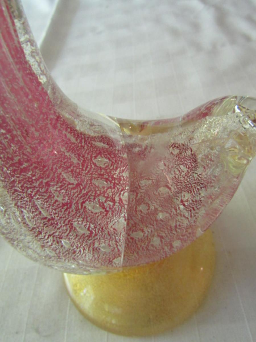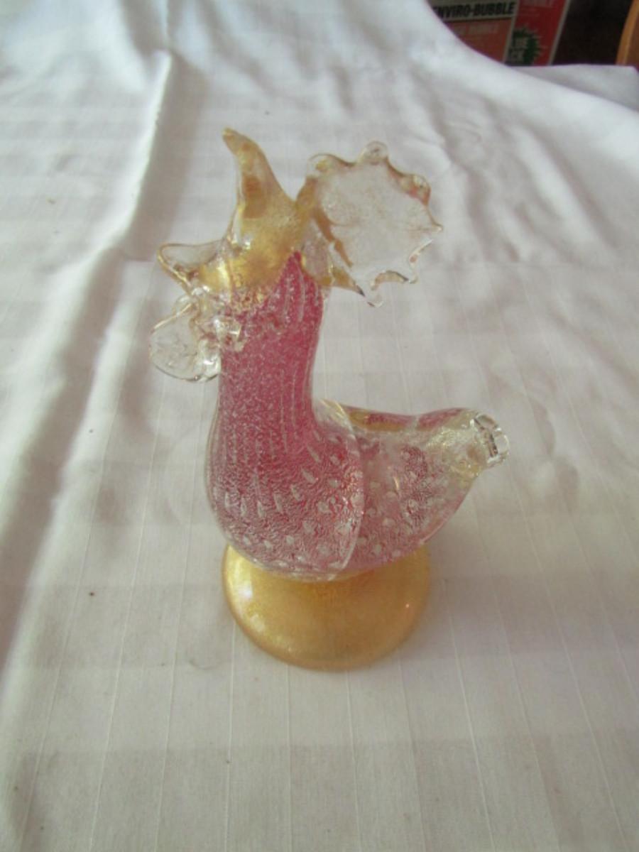 Art Glass Crowing Rooster. Please see all pictures- piece has what appears to be a crack, but may be a ridge from when it was made.
