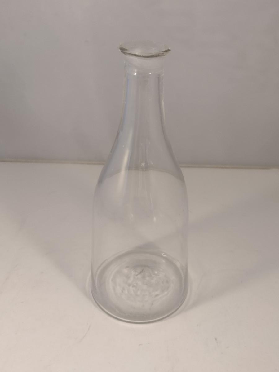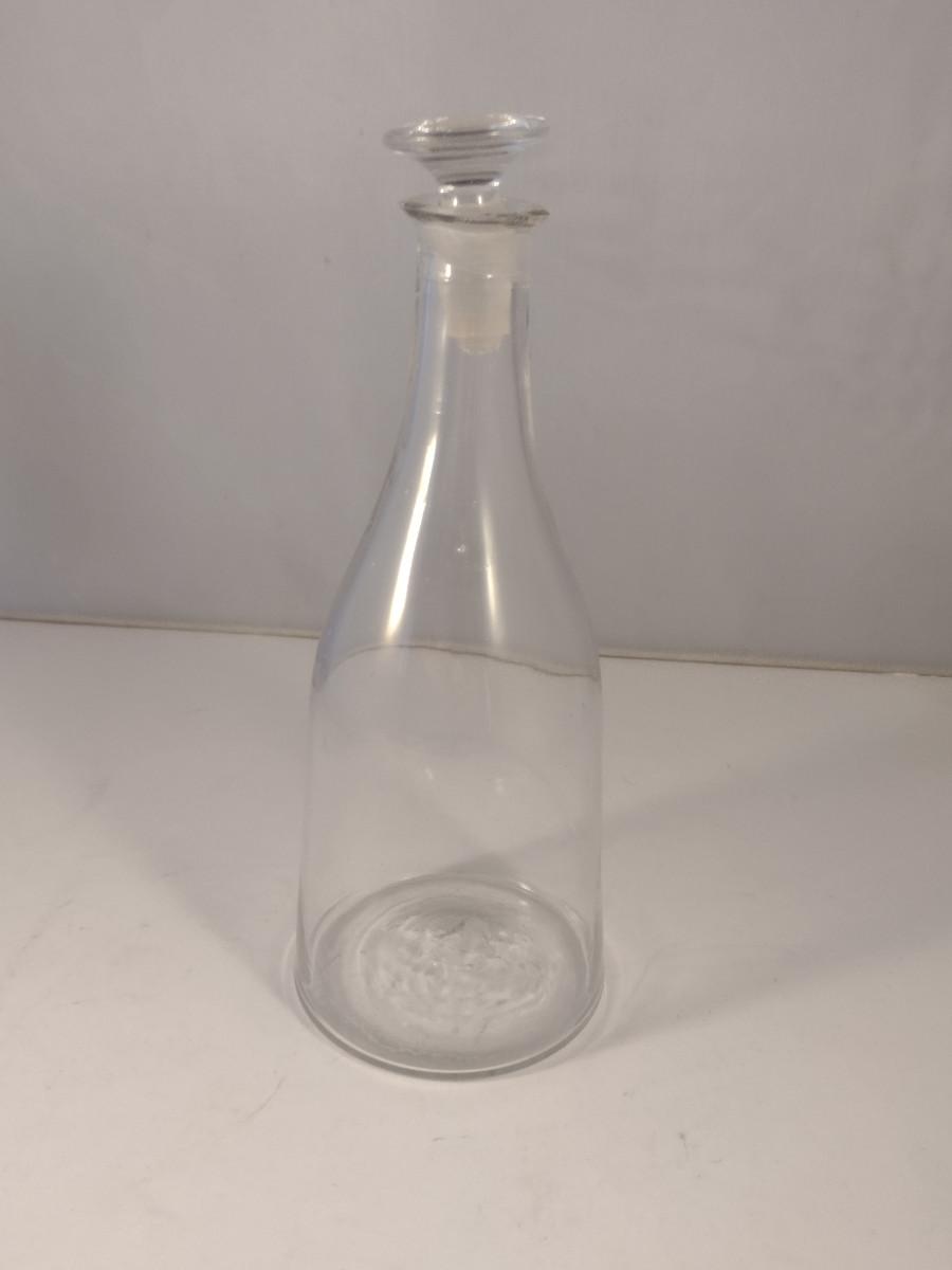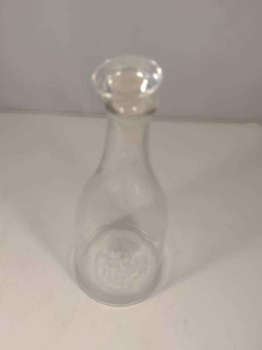 Art Glass Decanter with Stopper. Item has chipping on stopper- please see all pictures for condition.