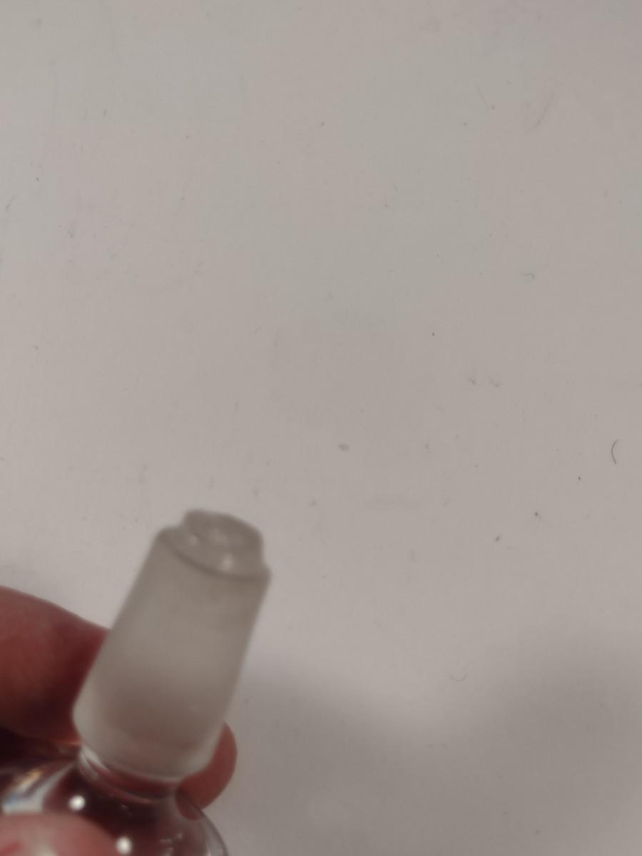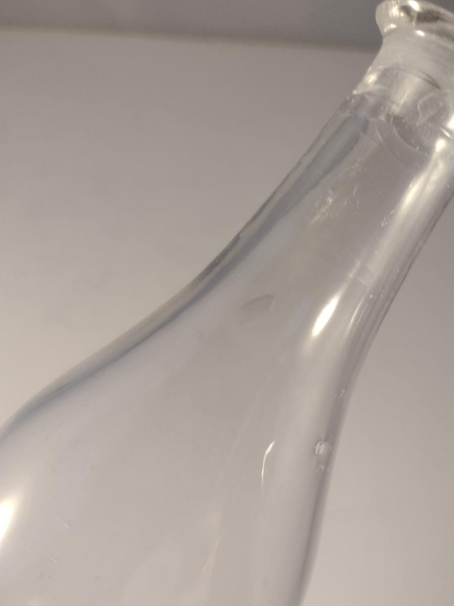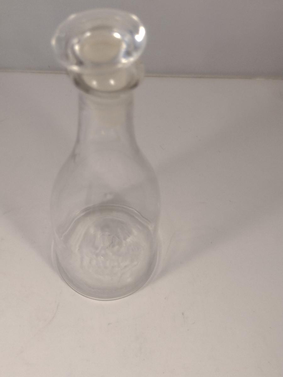 Art Glass Decanter with Stopper. Item has chipping on stopper- please see all pictures for condition.
