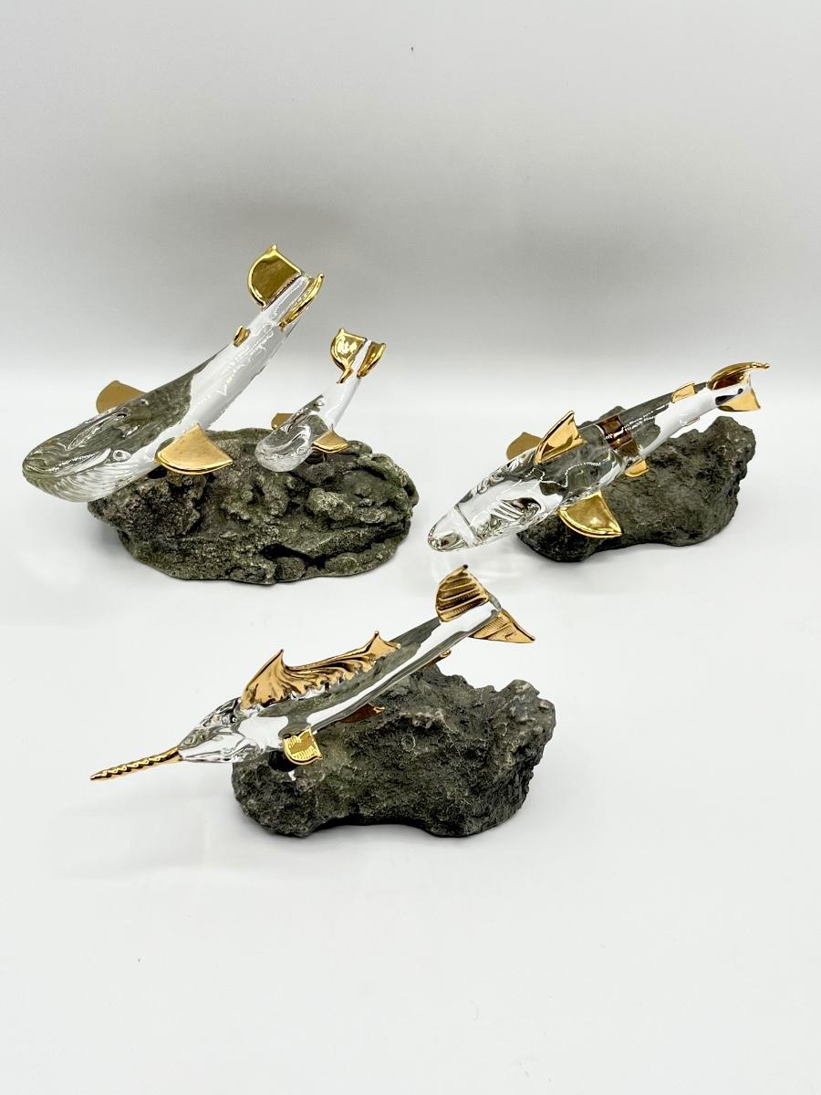 Art Glass Marine Life With Gold Accents ~ Set Of Three (3)