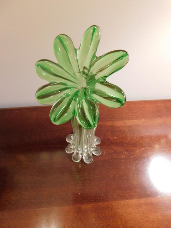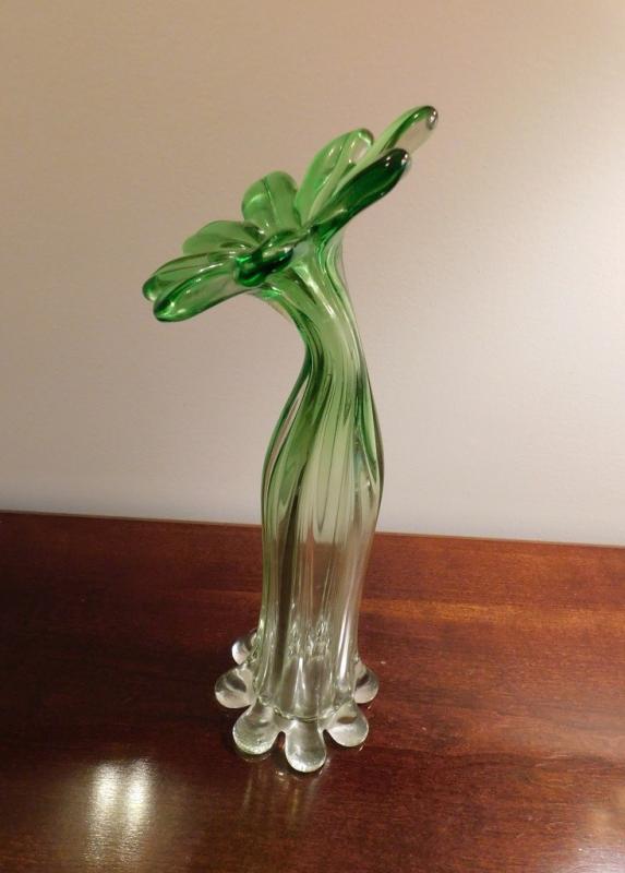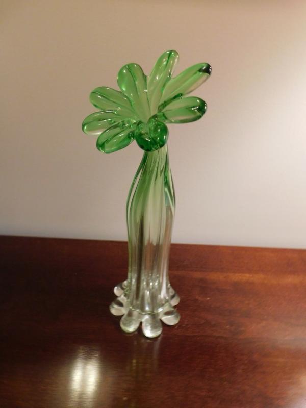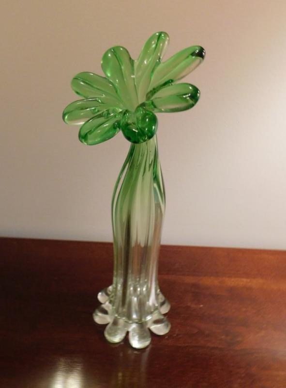 Art Glass Green and Clear Bud Vase 6 1/4"