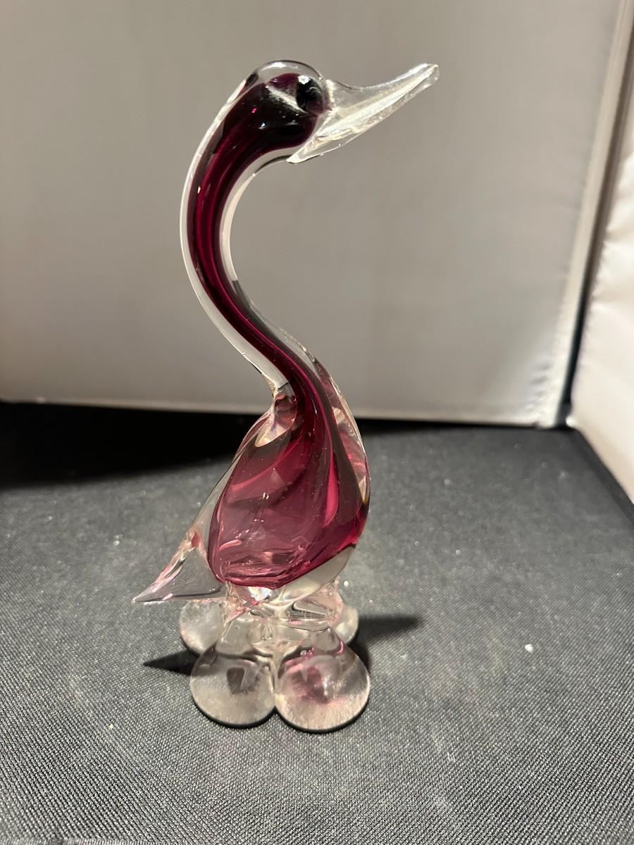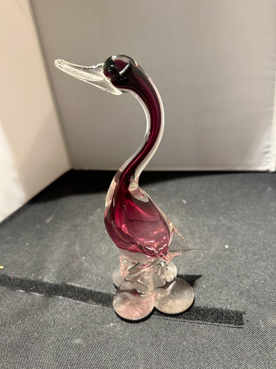 Art Glass Murano Style Duck / Goose - Lovely Rose Red & Clear