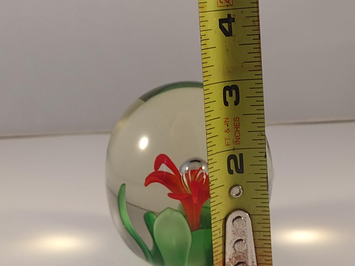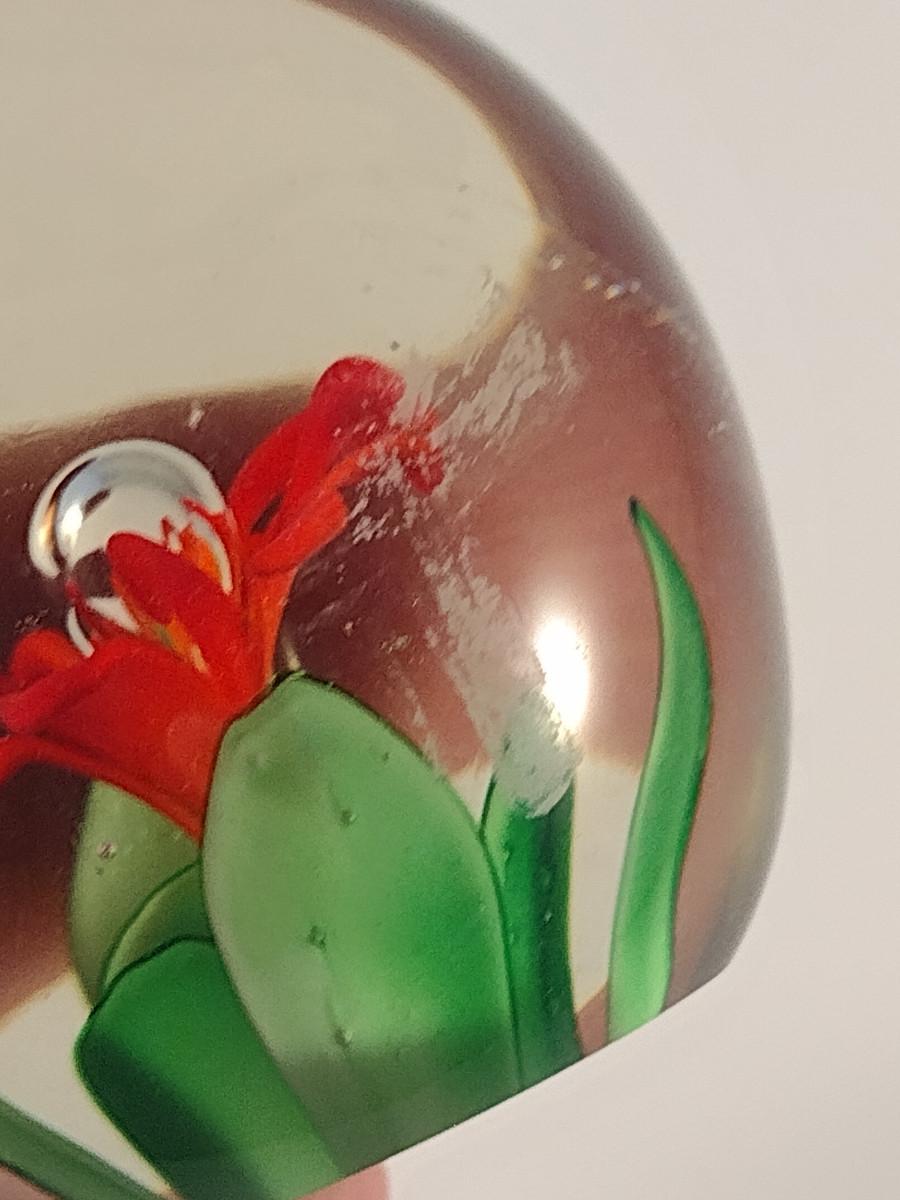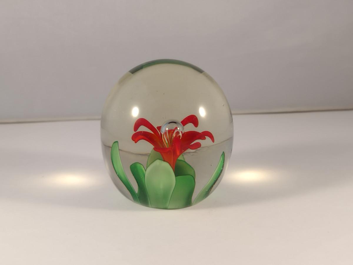 Art Glass Paperweight with Floral and Controlled Bubble Design