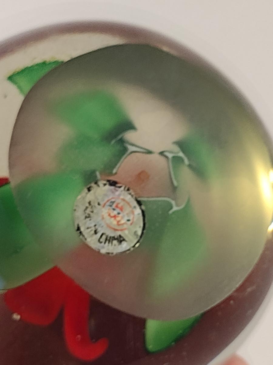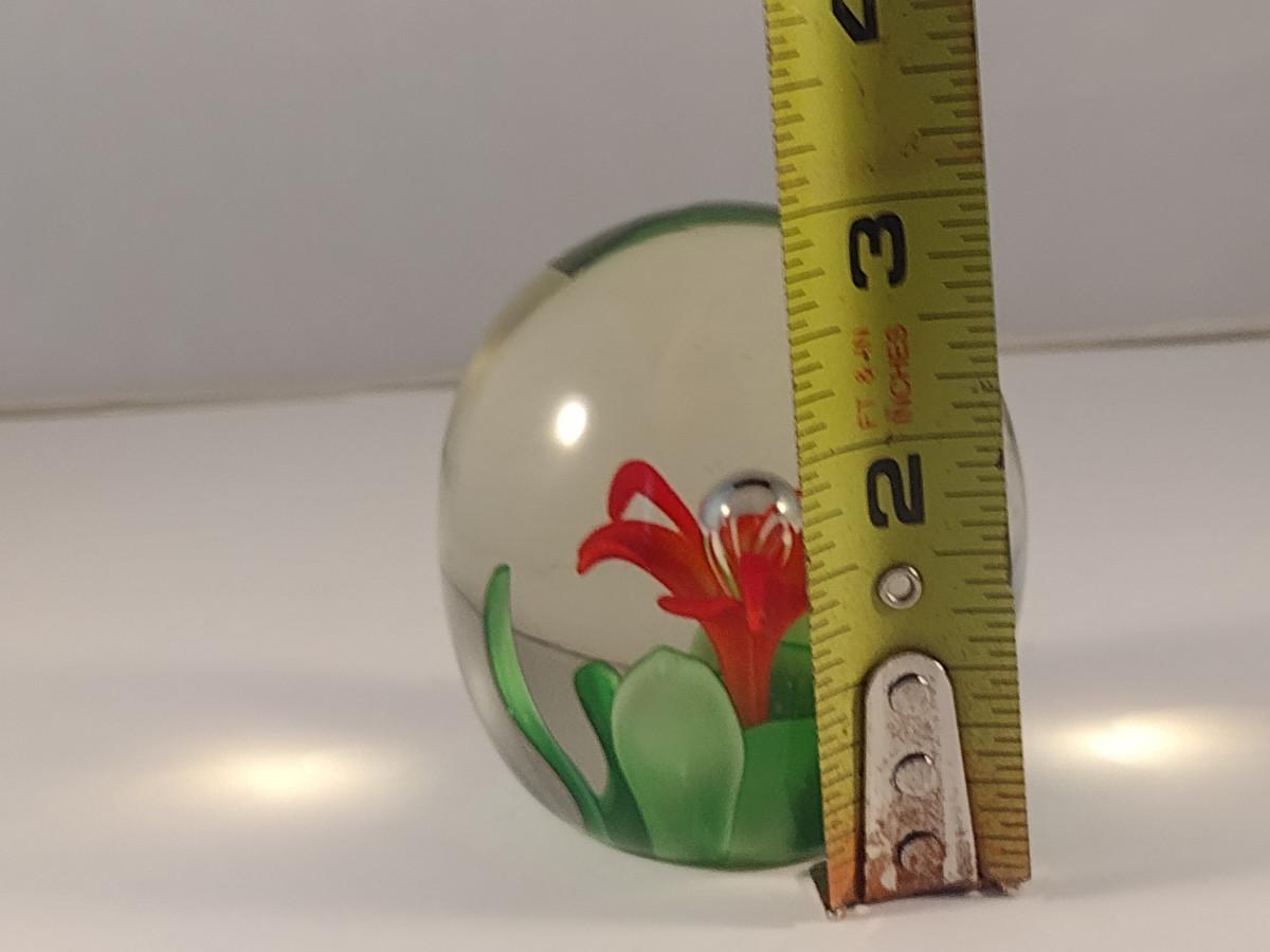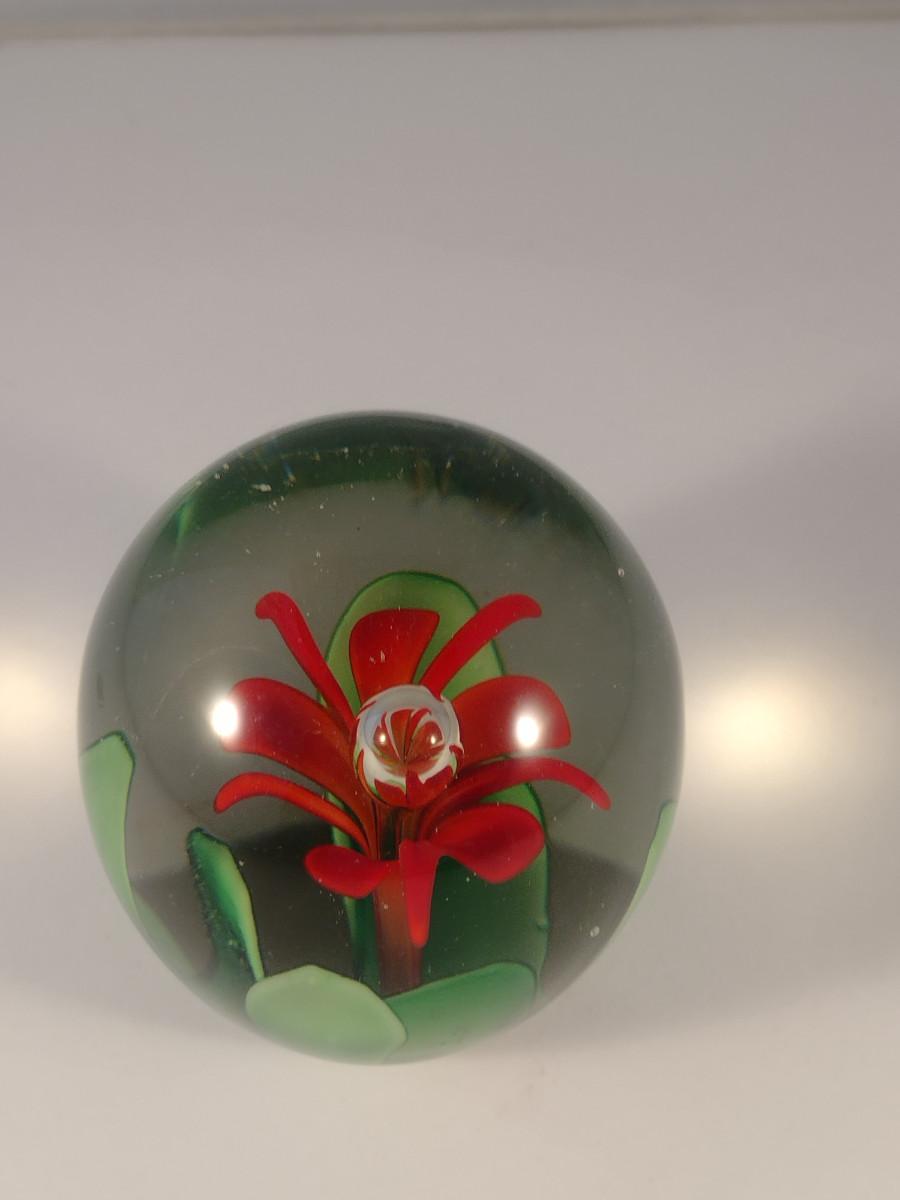 Art Glass Paperweight with Floral and Controlled Bubble Design