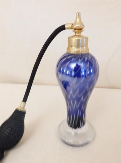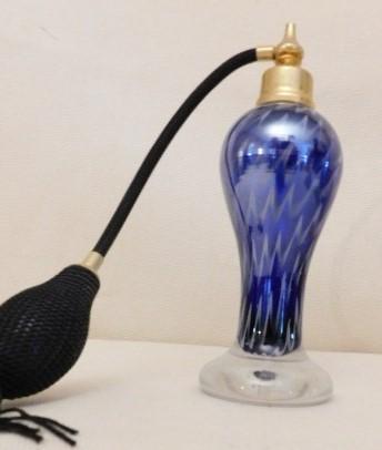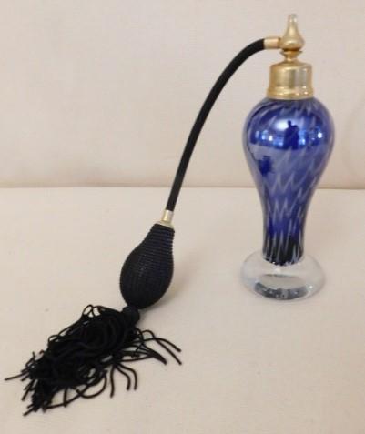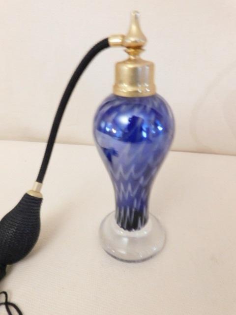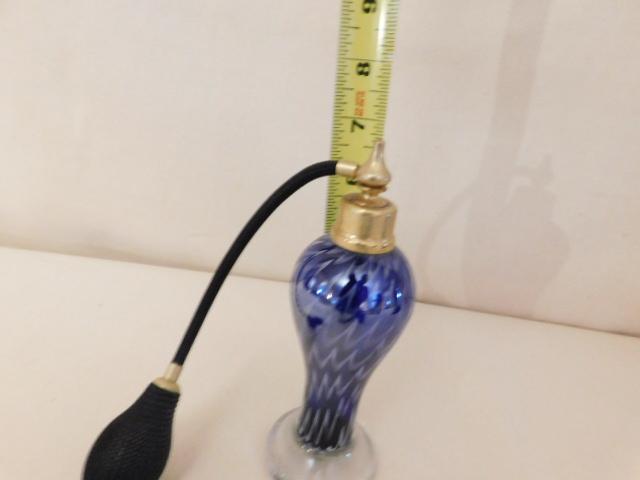 Art Glass Perfume Atomizer Blue with Gold 7"