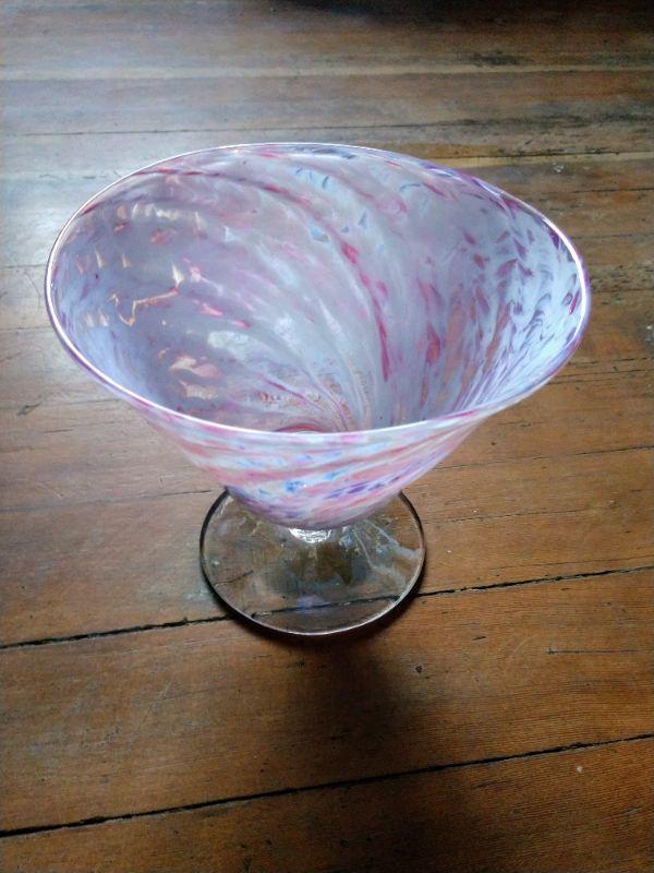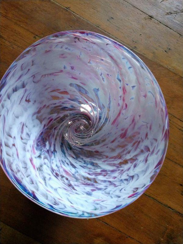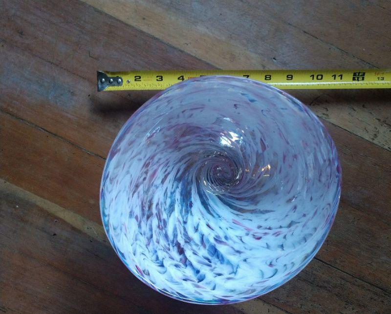 The blown art glass is 7.5" in diameter. It is a lovely art piece.