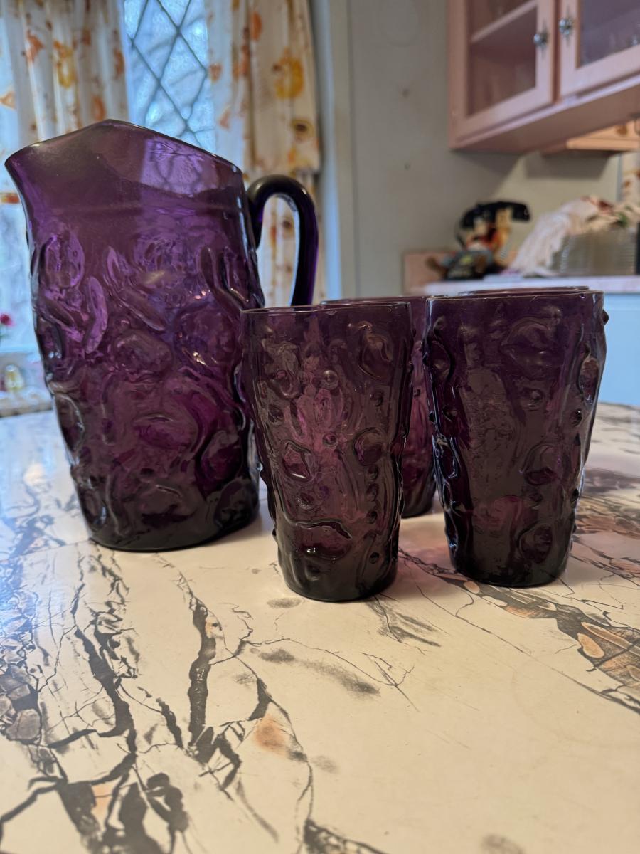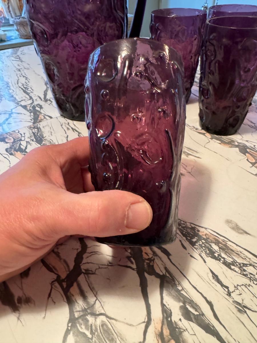 Art Glass Pitcher and Glass Set