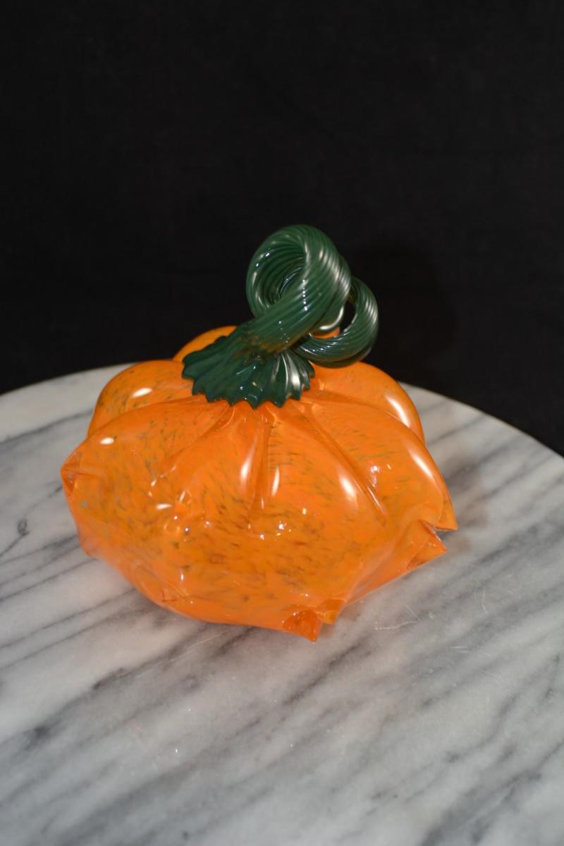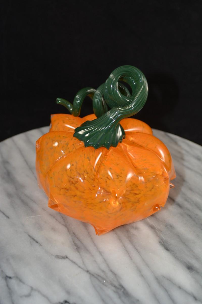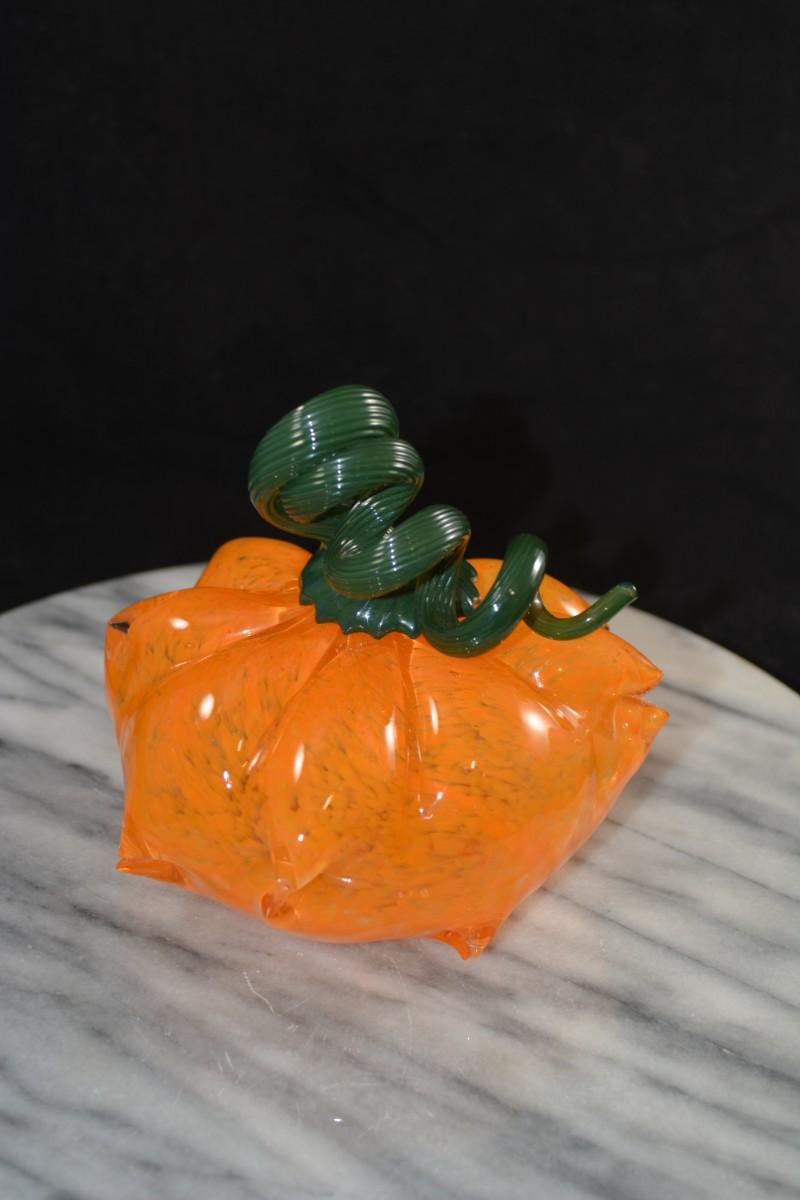 Art Glass Pumpkin w/ Twisty Stem 5.5” Tall