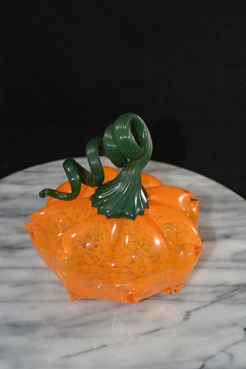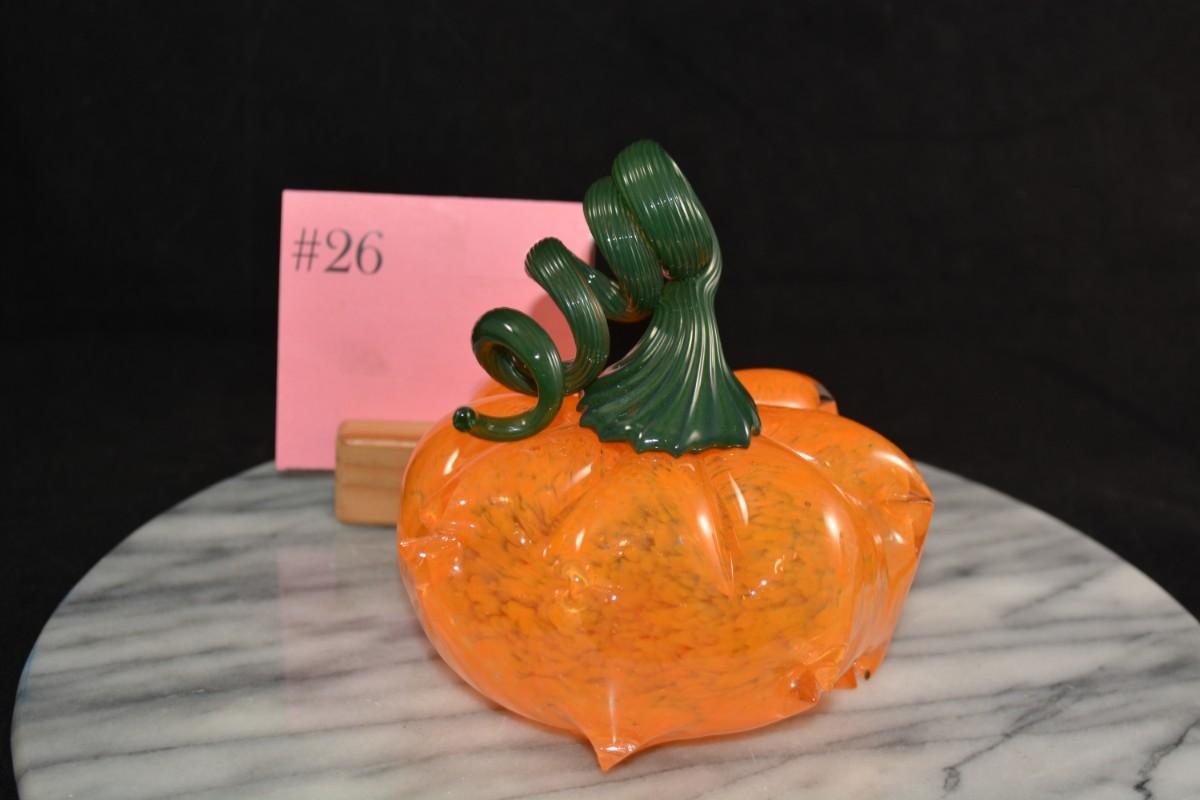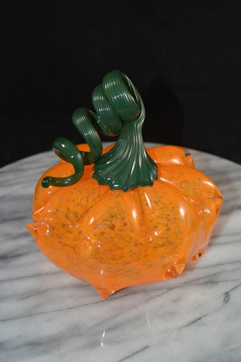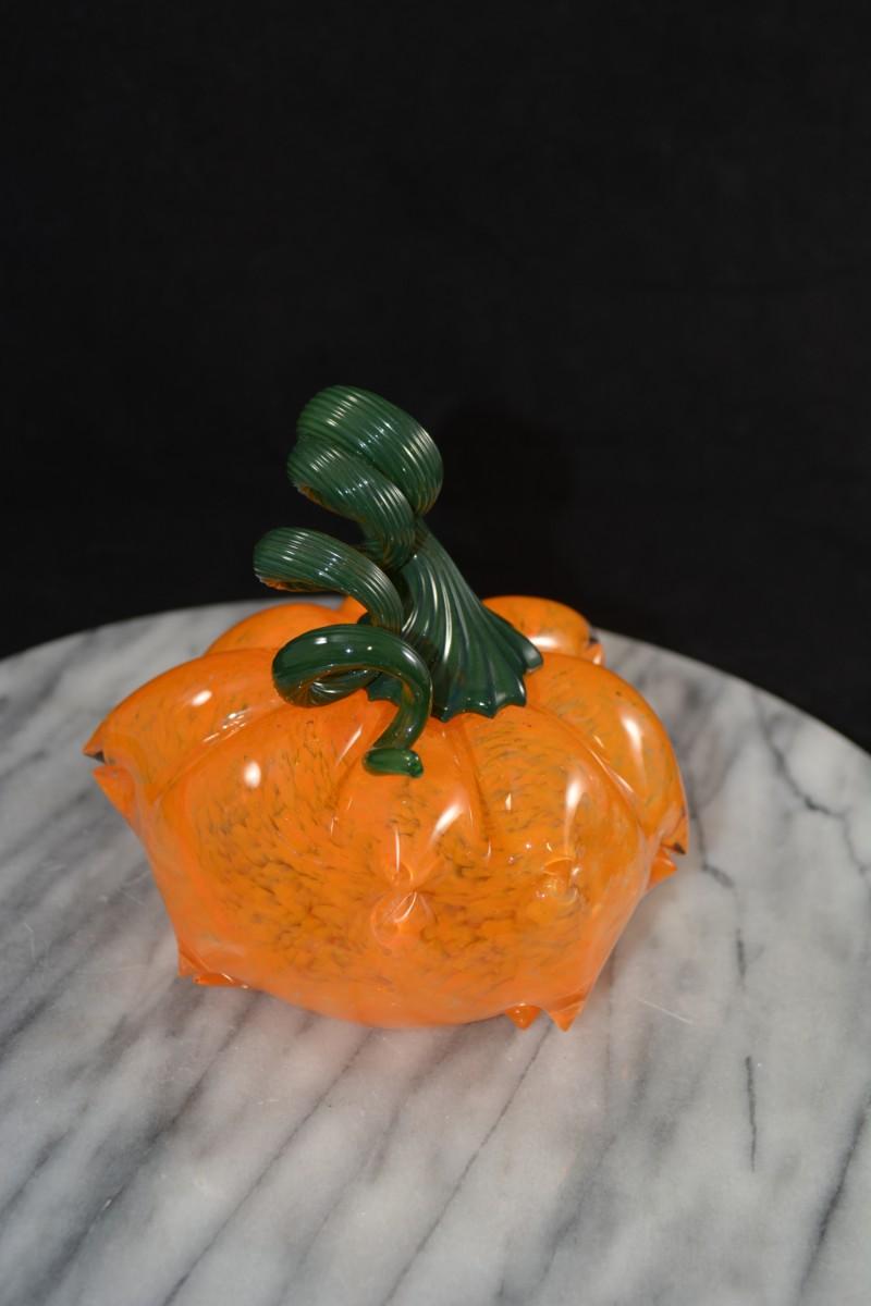 Art Glass Pumpkin w/ Twisty Stem 5.5” Tall