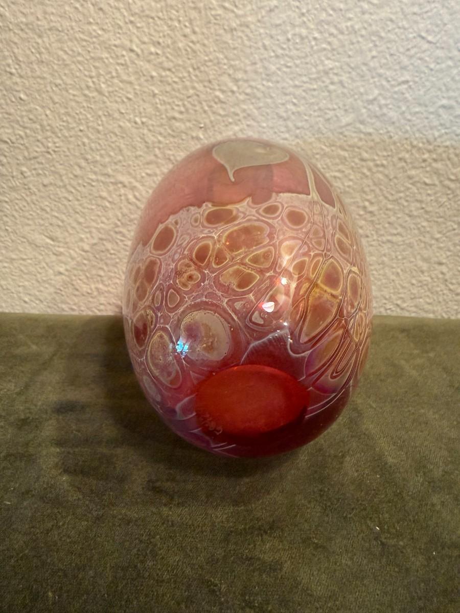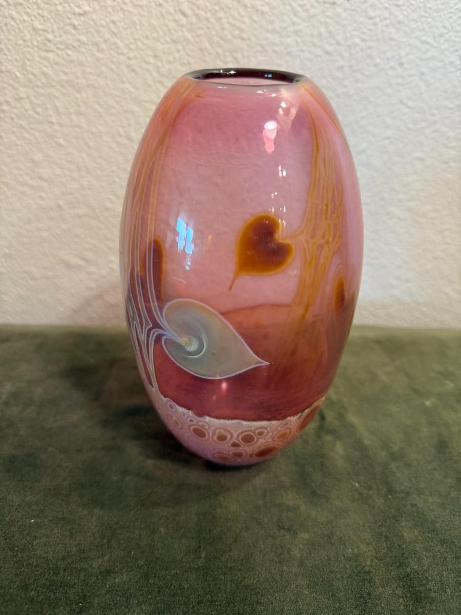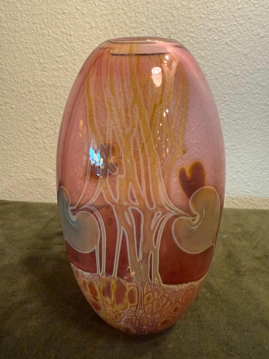 Pre-owned. Art Glass Vase - Pink and Gold Tone -6.5in Tall