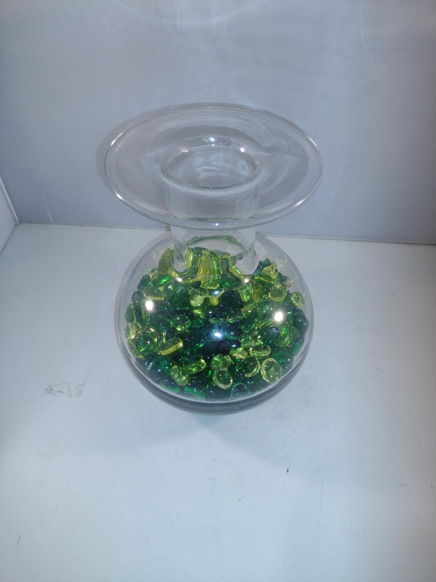 Art Glass Vase with Glass Pebble Filler- Approx 10" Tall