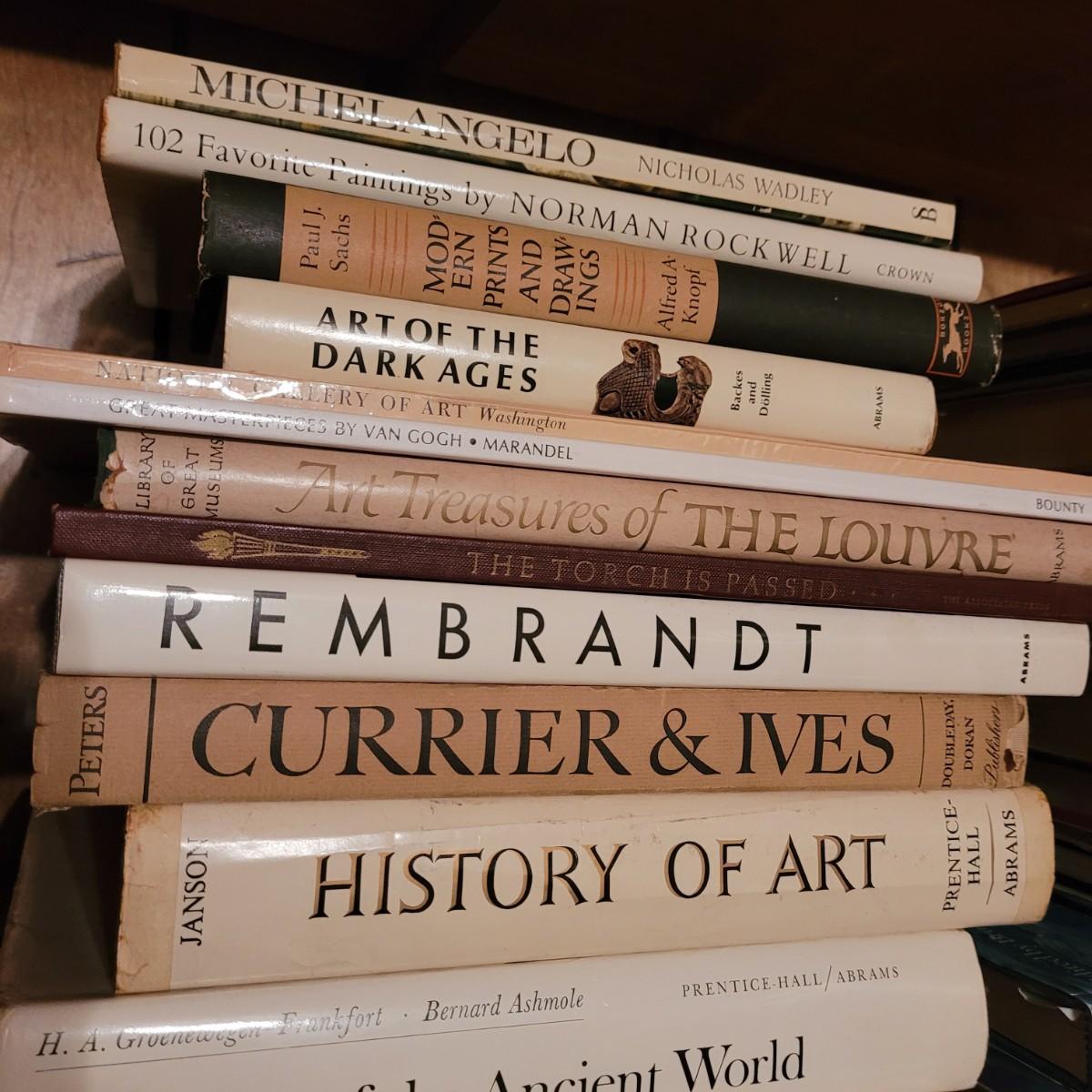 A lovely collection of art history books, covering eras of artistic styles as well as notable artists, both modern and classical. Shipping available. Shipping can be costly. We suggest contacting our preferred local shipping provider, Postage Express, with dimensions and getting an estimate before bidding: (828) 670-5501or postageexpress@yahoo.com.