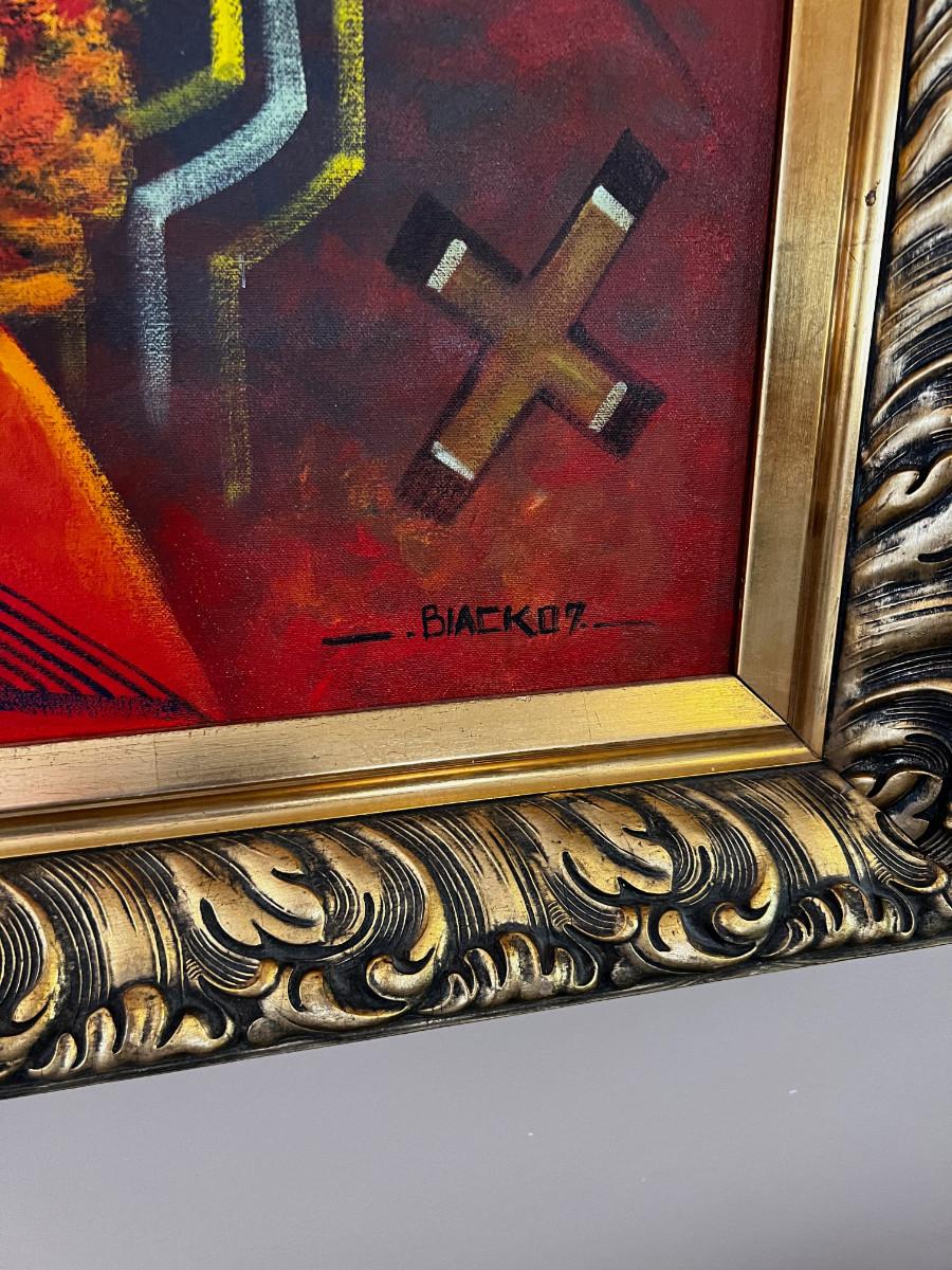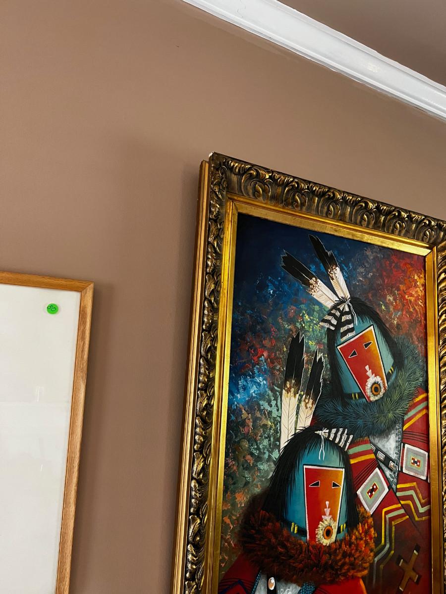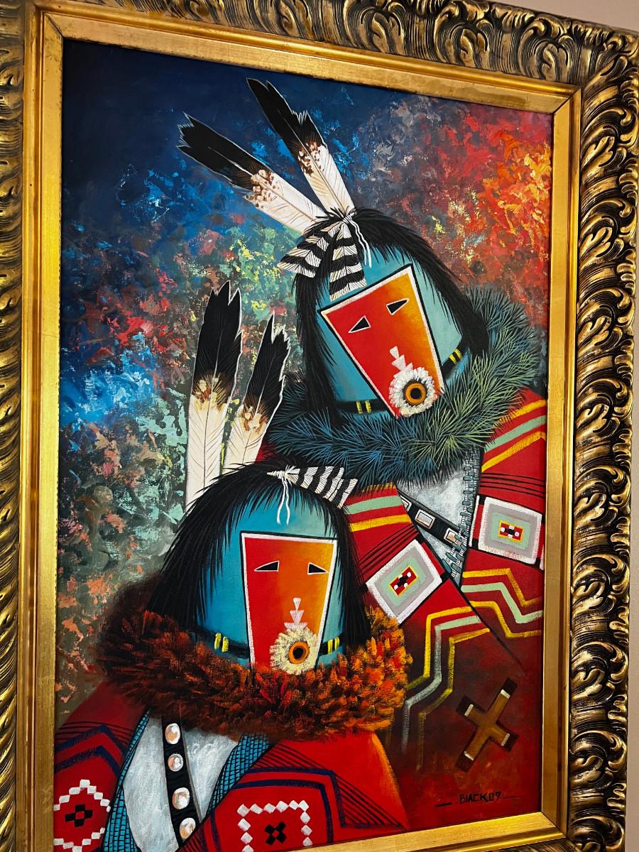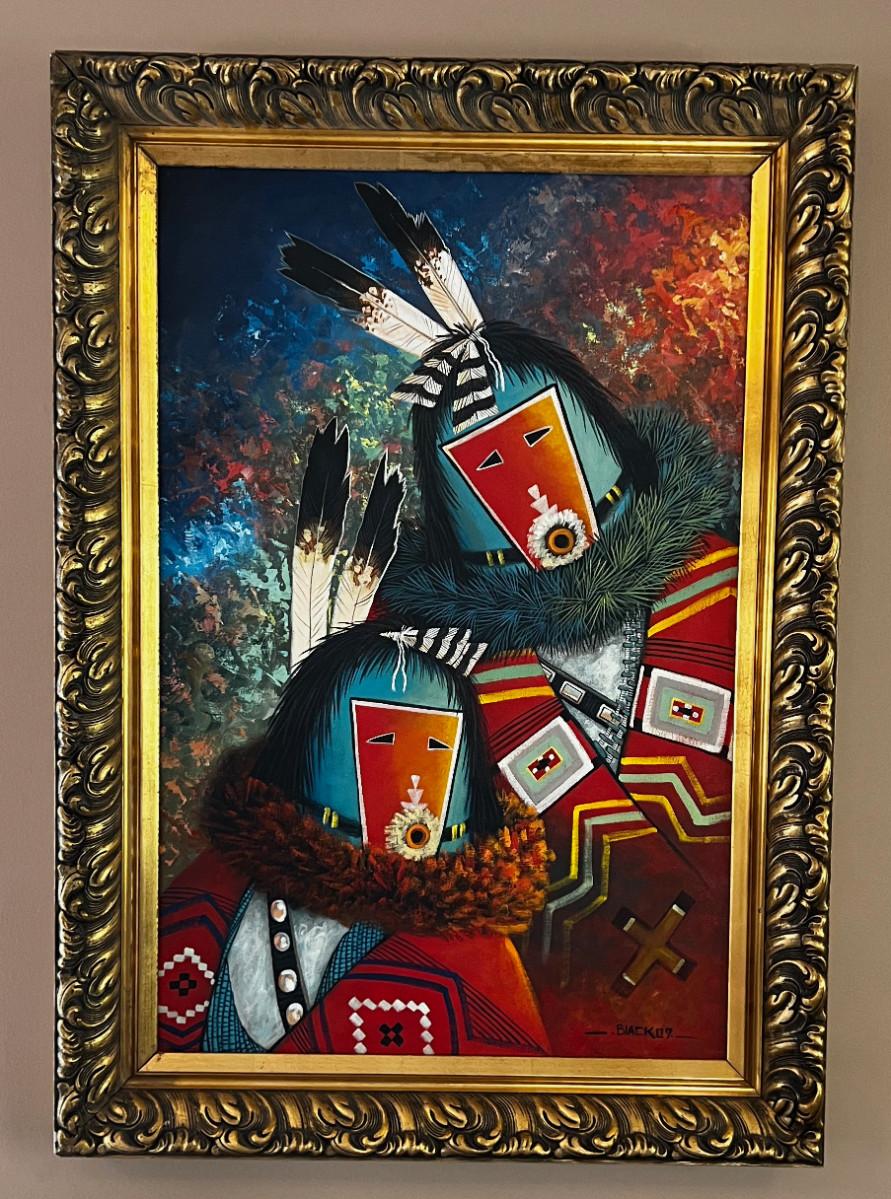 ART! Hopi, oil on Canvas Kachinas Framed Signed Black 07