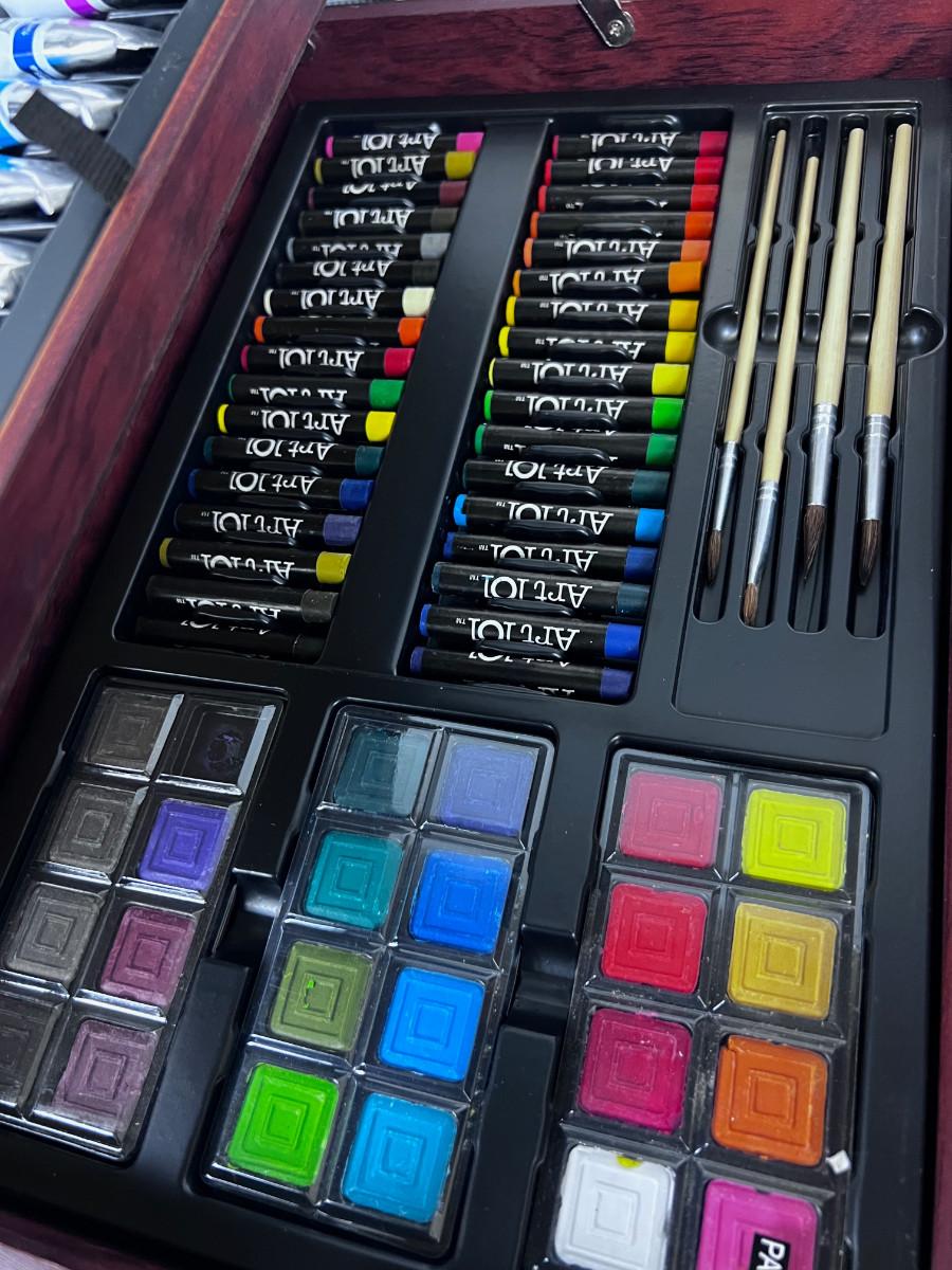 ART Kit: Never used. Oil, Acrylic, Water and Pastel. In Lovely Dark Walnut wood Box. ART 101