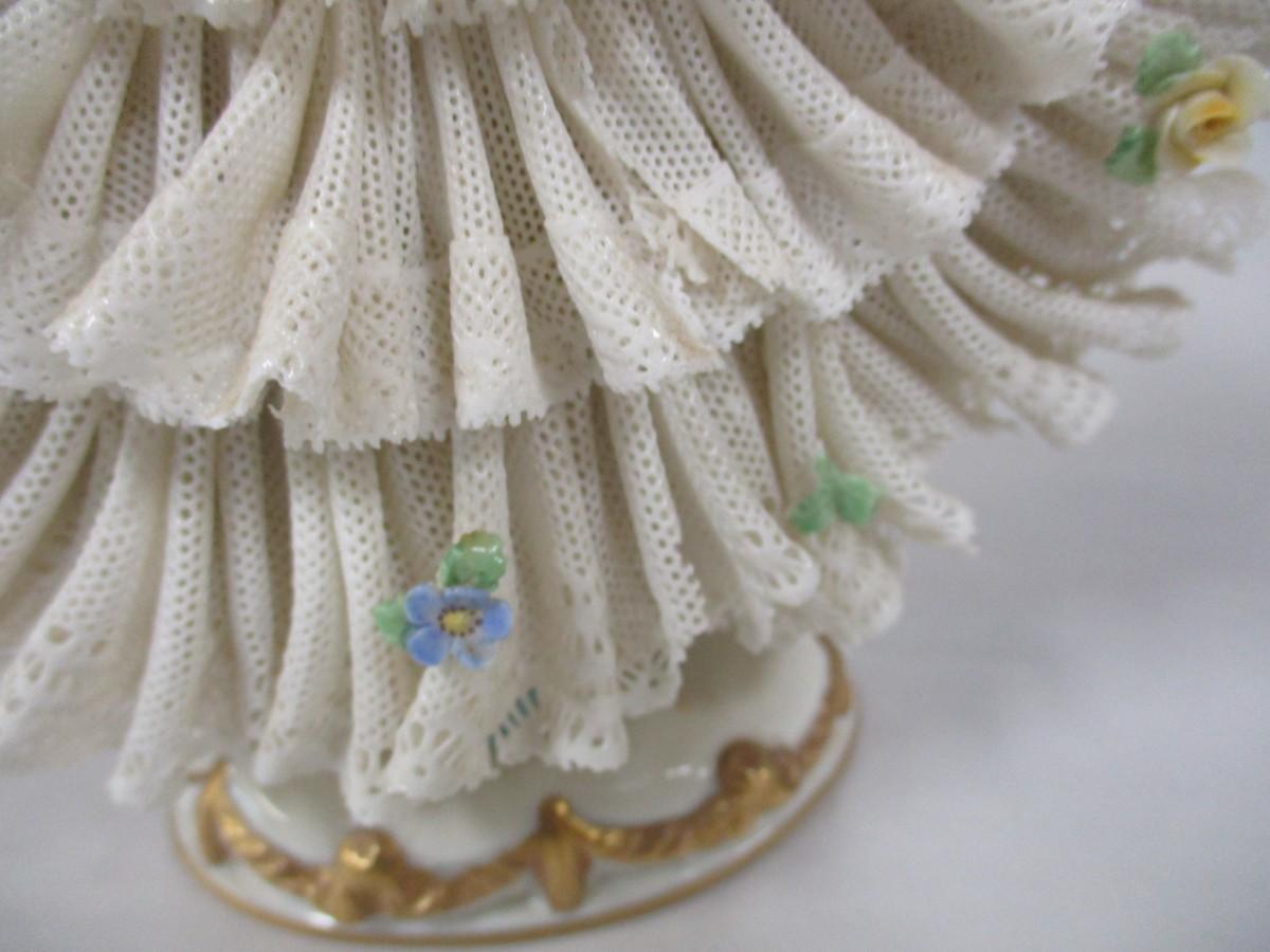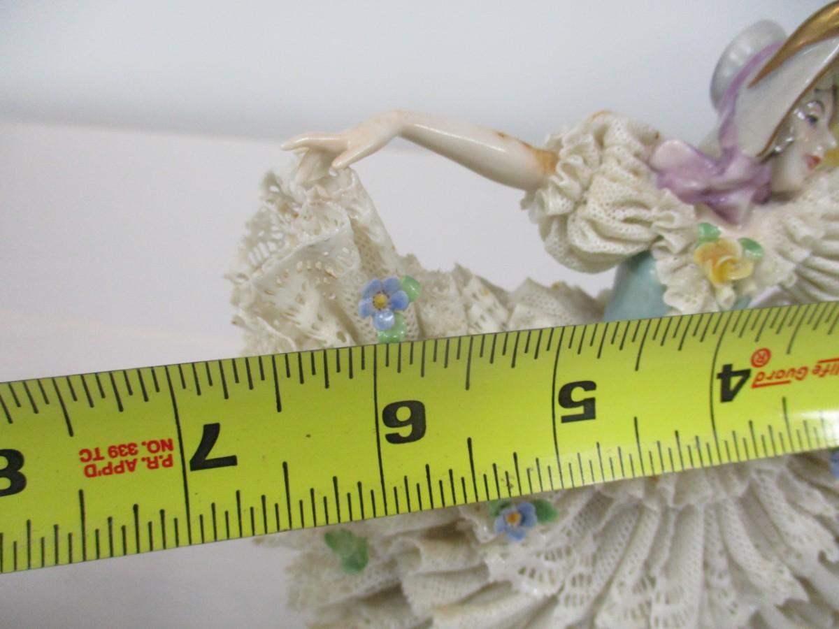 Art Lace Figurine has a small piece of lace missing on the bottom backside of dress as shown