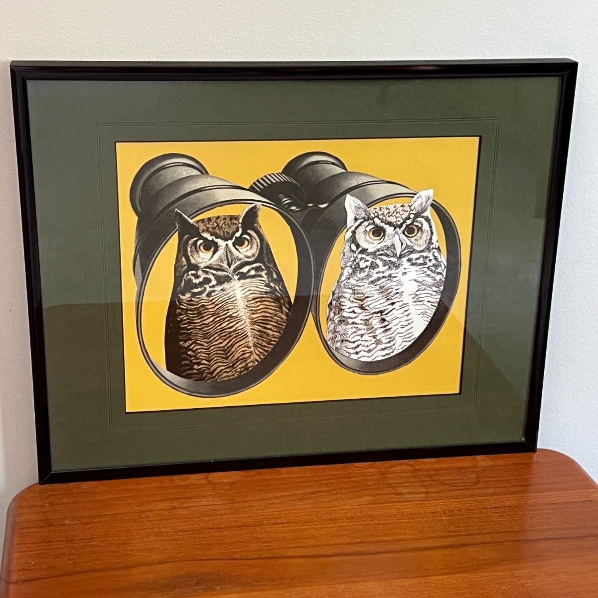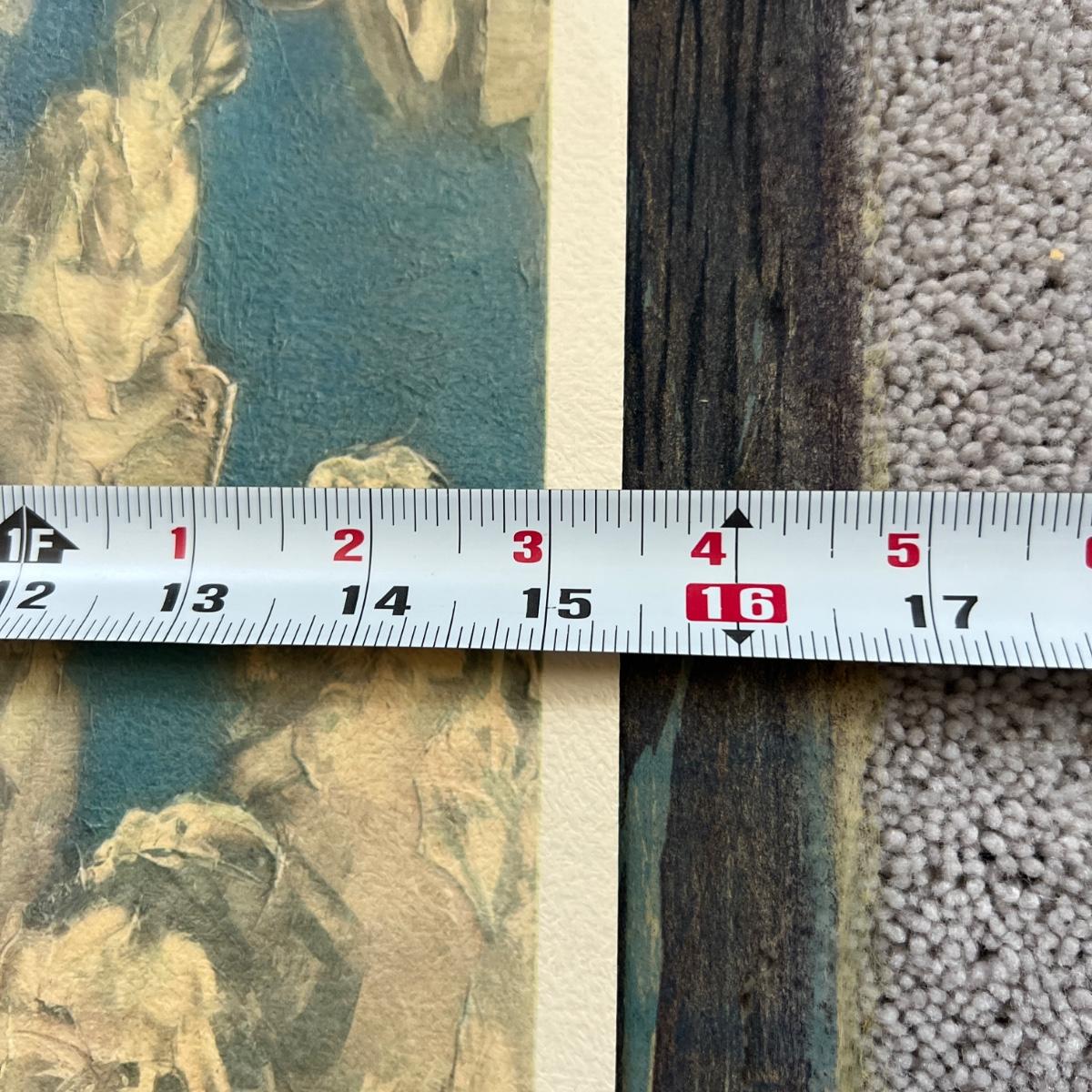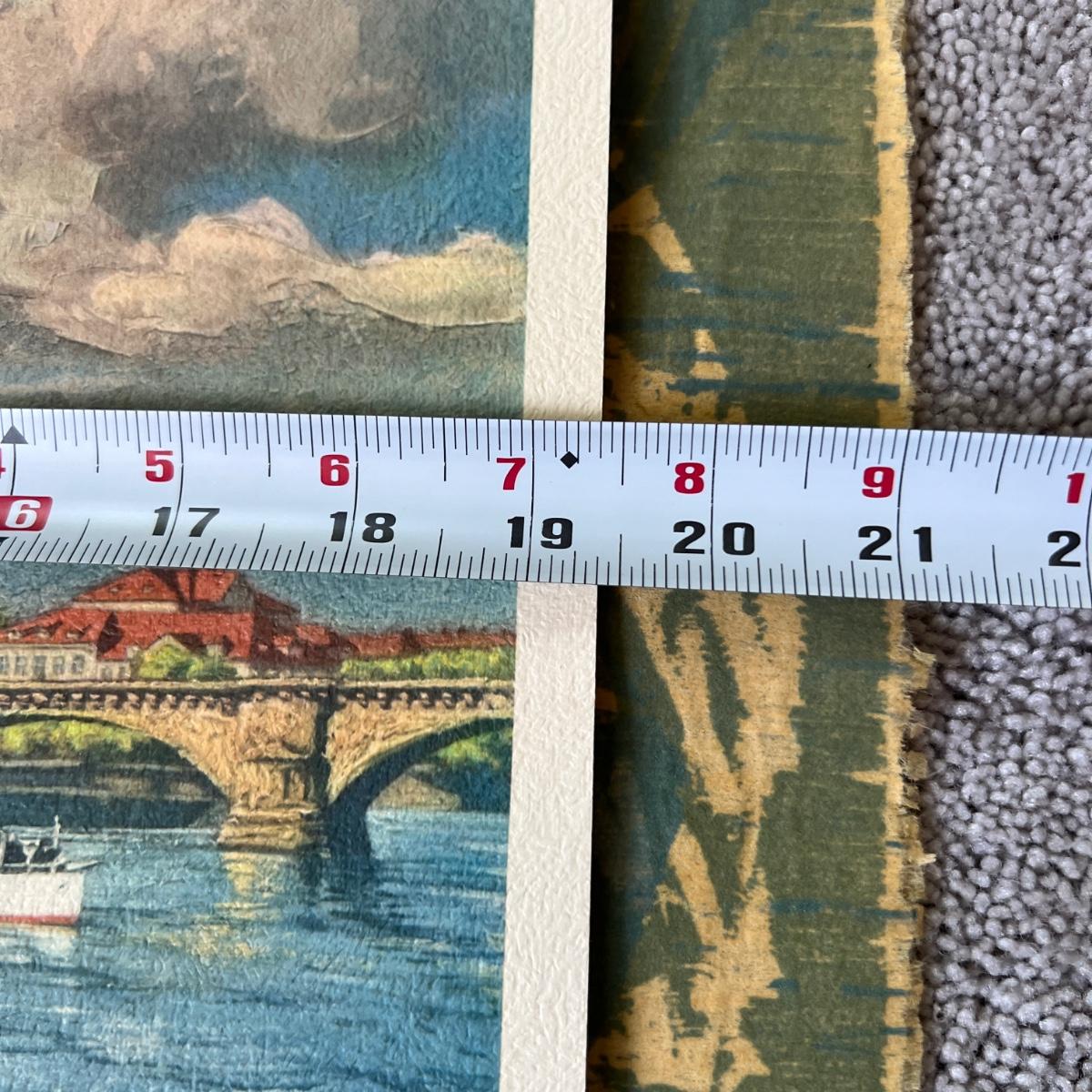 Framed antique piano music cover, framed collage art from 60’s magazine, MCM block print art on cotton paper?, water scene print.
