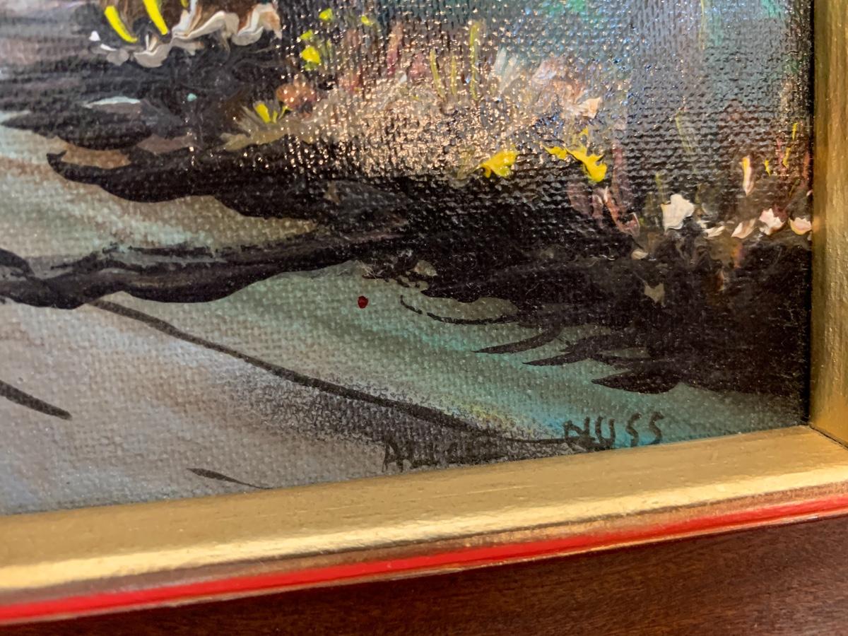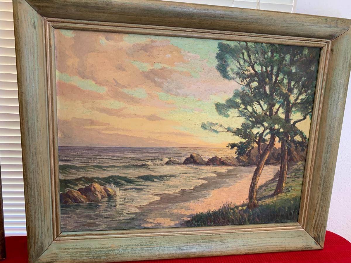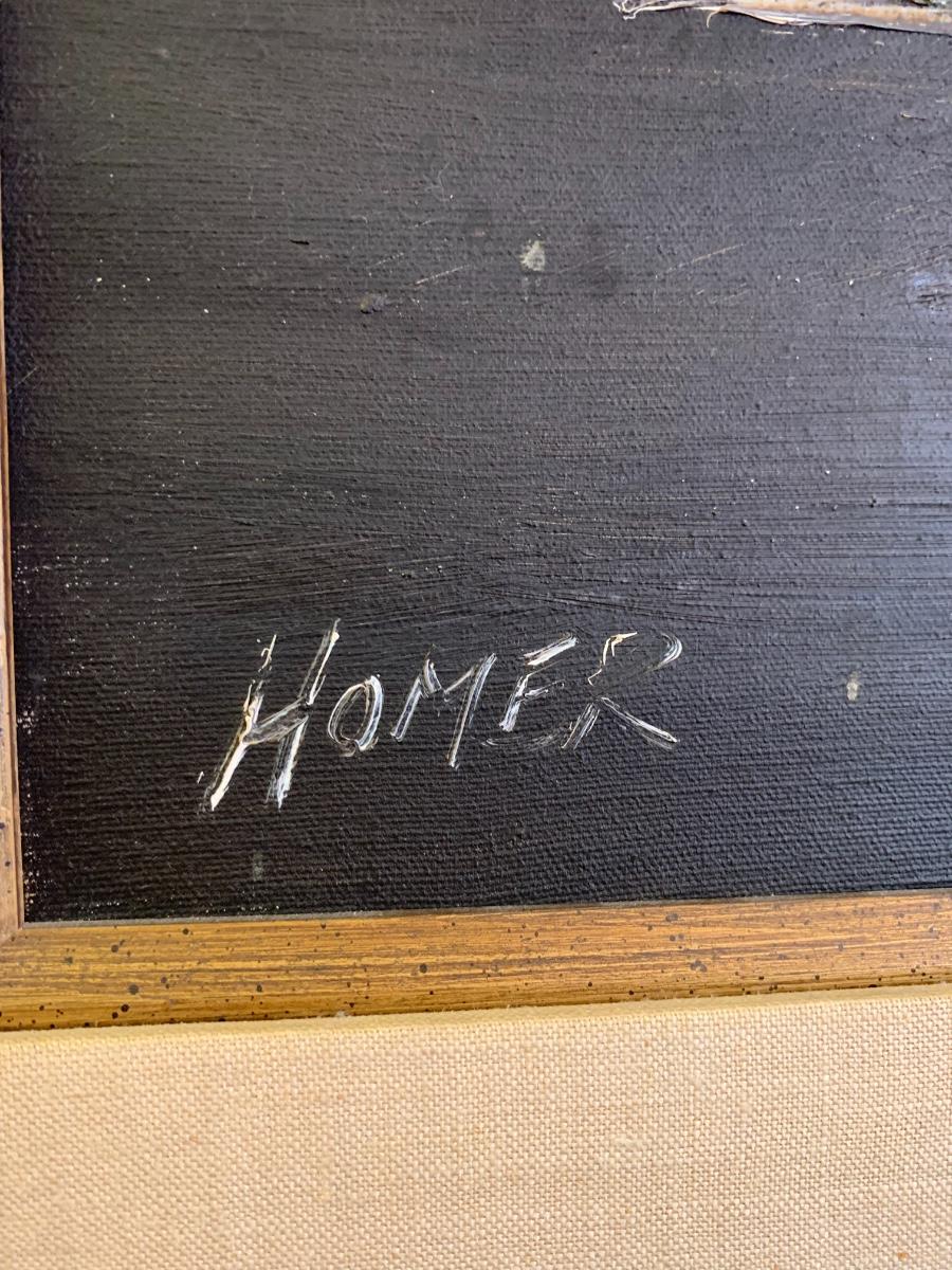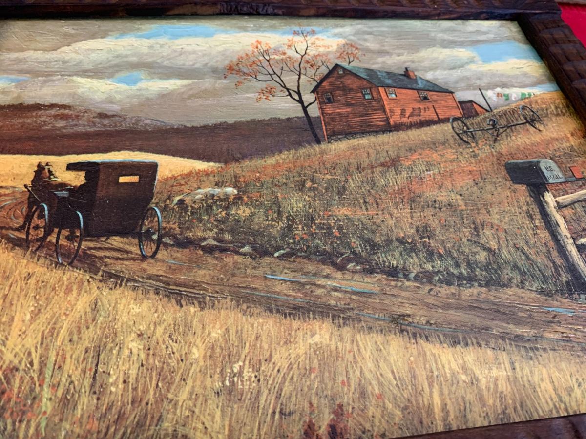 Original by Homer Costello, Original acrylic by J Vincent Dungan, Original oil by Alice Nuss and a framed print titled “Homecoming.” All in excellent condition, were professionally wrapped and stored. Homer frame measures 29” x 24”