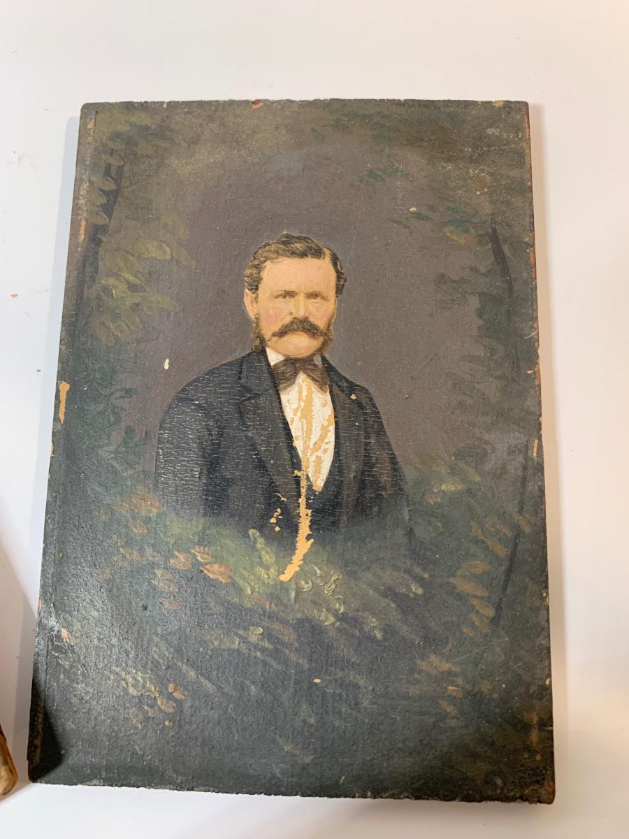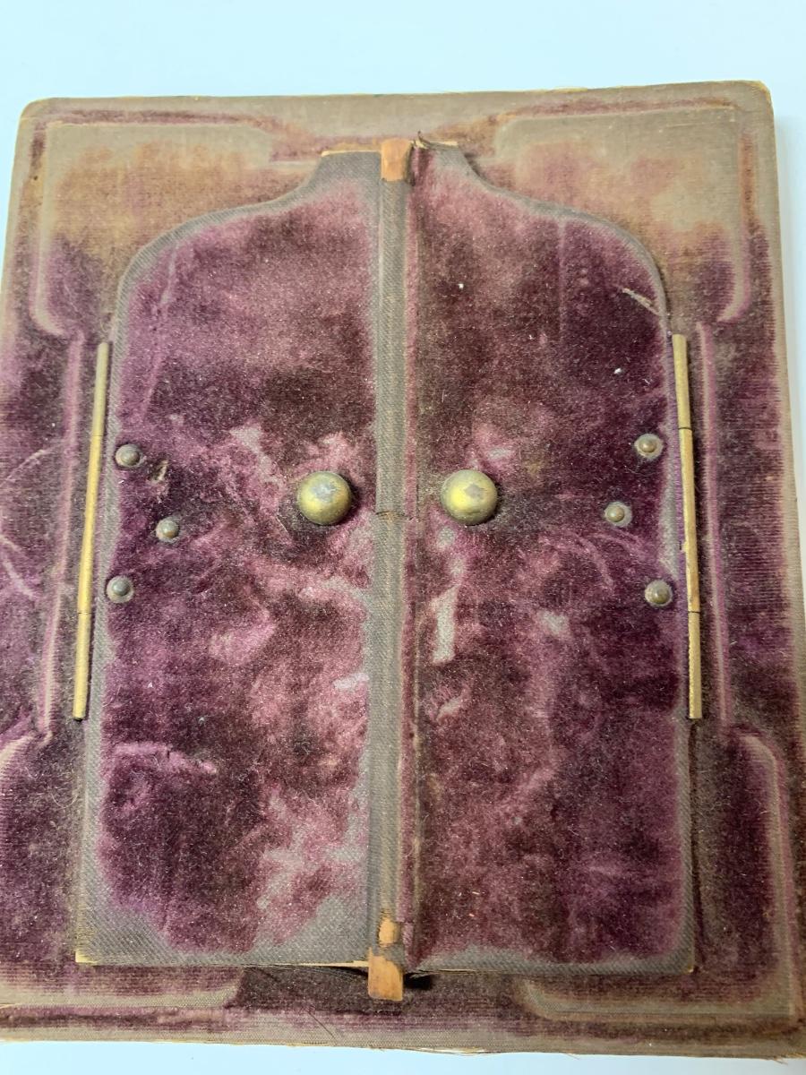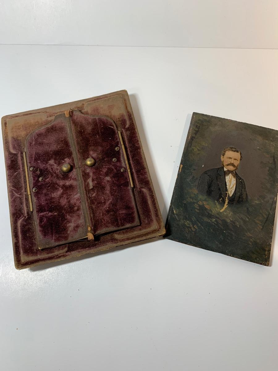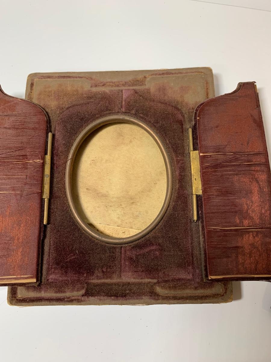 Antique velvet picture frame and an early Victorian painting on wood unsigned
