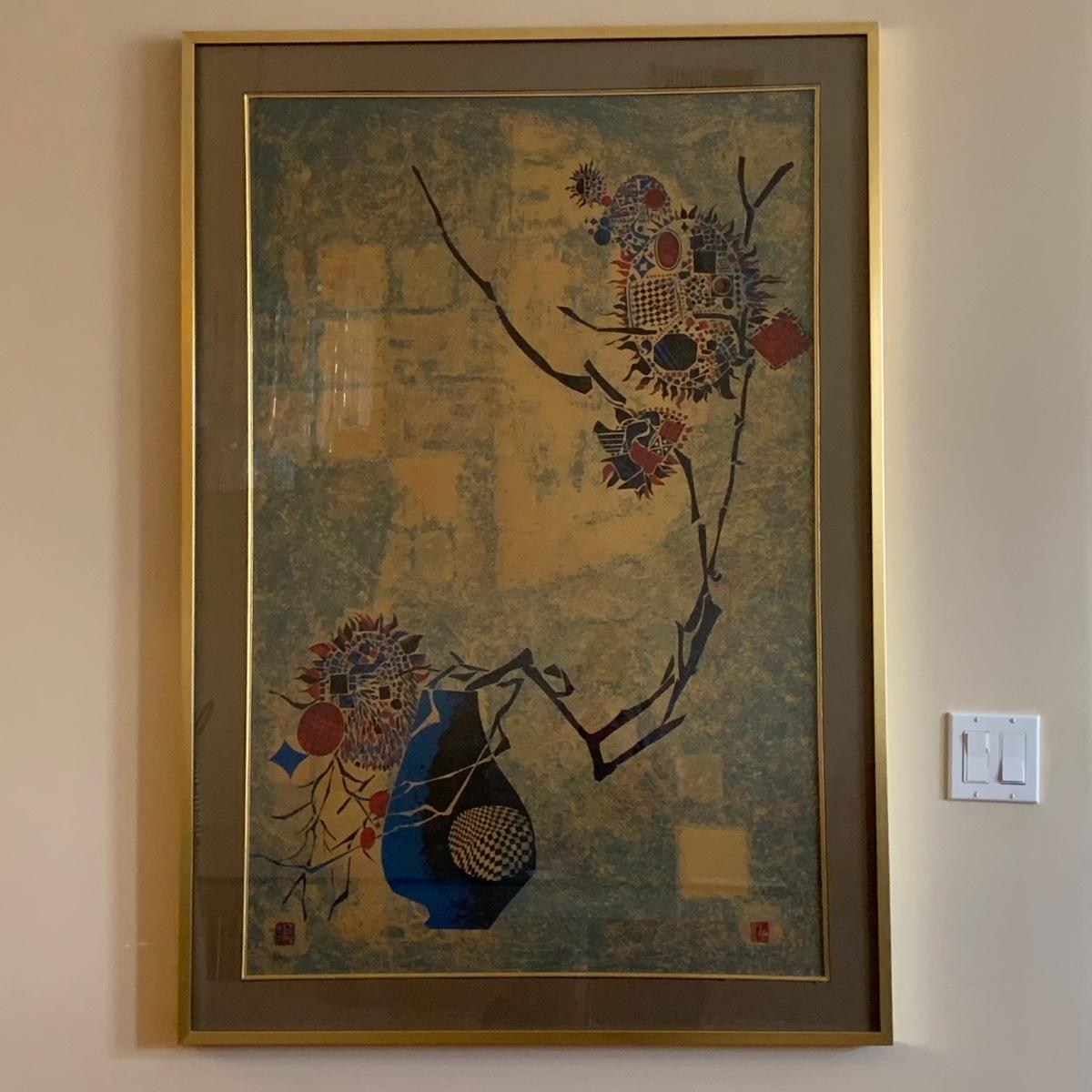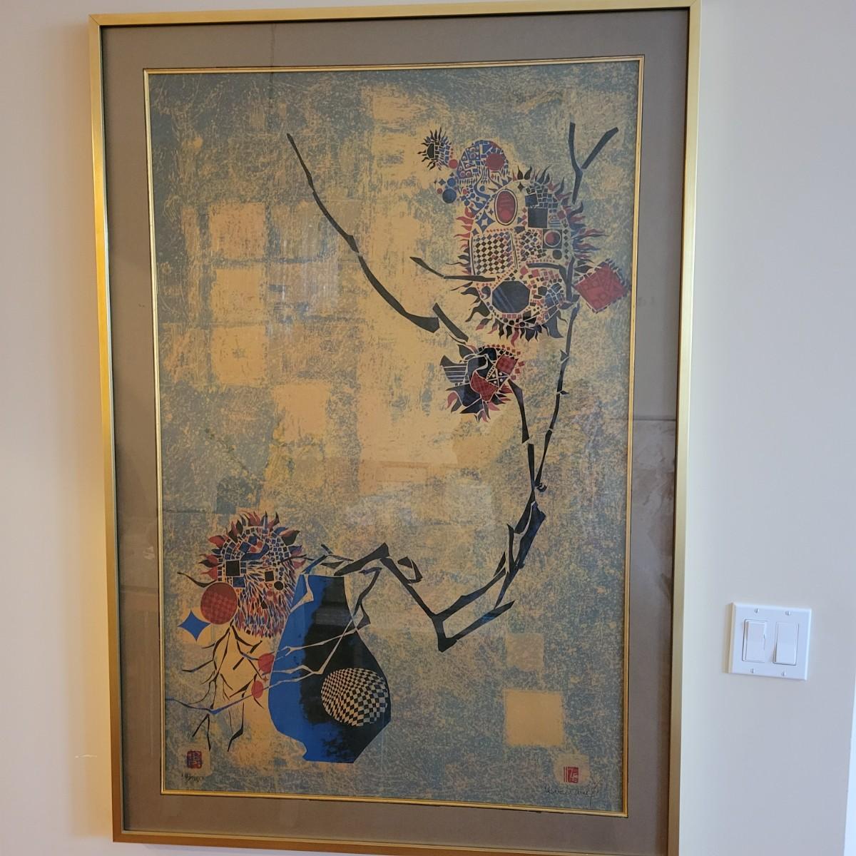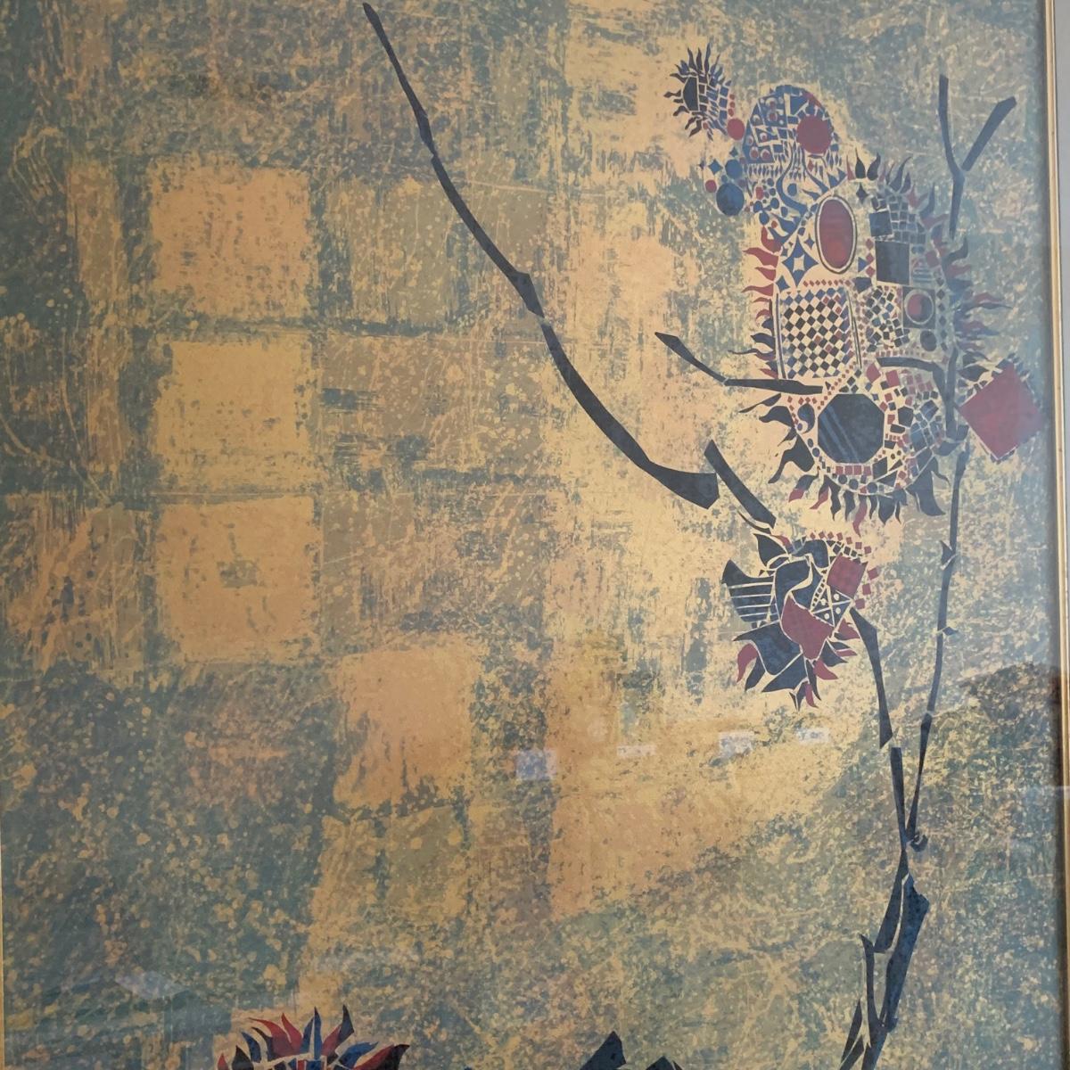 Lithograph art by Hoi Lebedang pencil signed and numbered (#244/250). Art is in a metal frame with glass front. Frame measures 36.5” x 52H”.