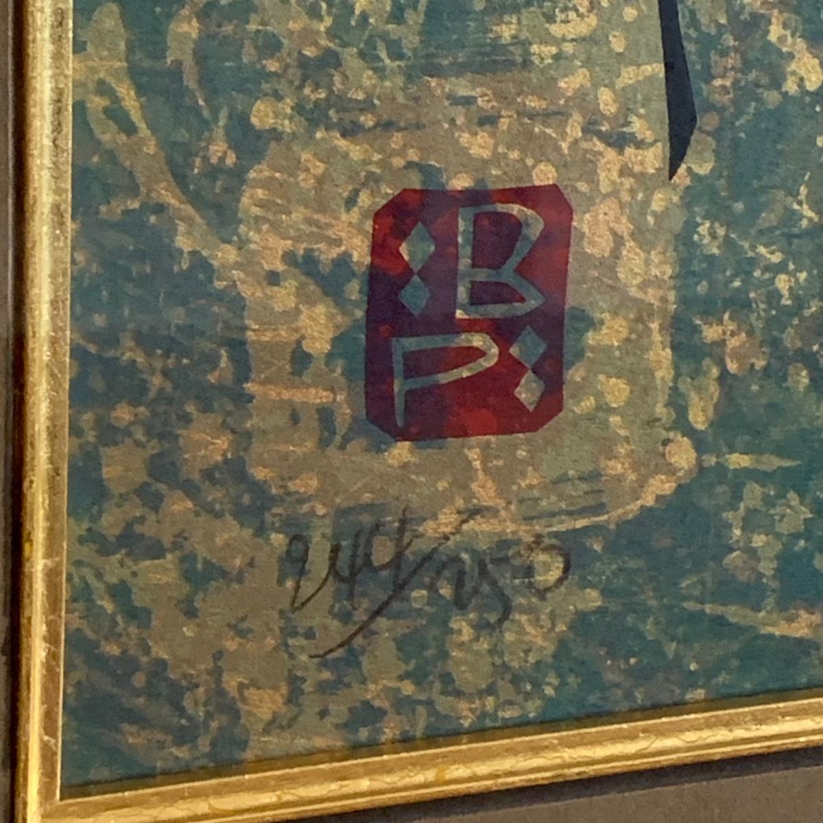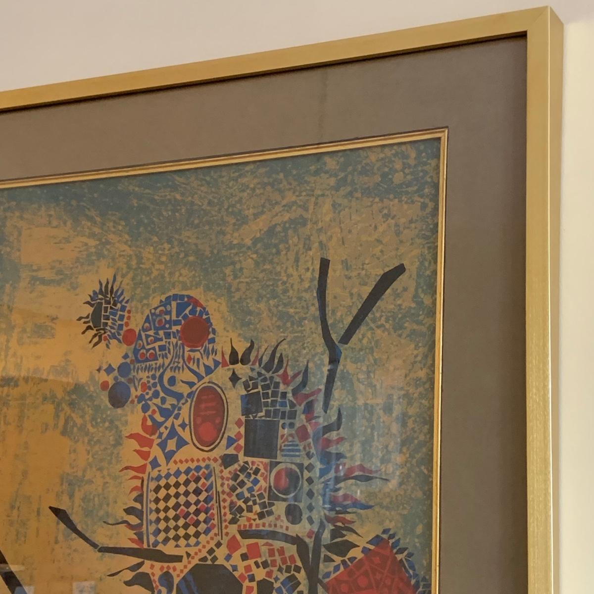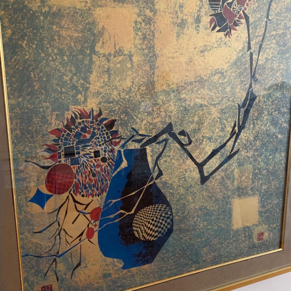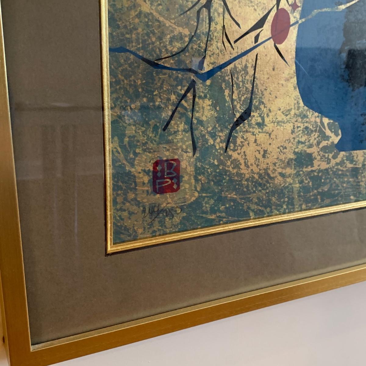Lithograph art by Hoi Lebedang pencil signed and numbered (#244/250). Art is in a metal frame with glass front. Frame measures 36.5” x 52H”.