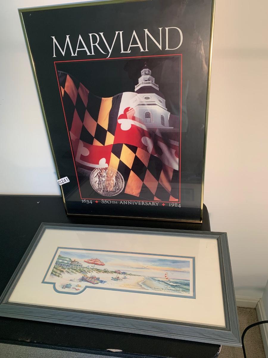 Art Lot - Signed Beach Scene & Maryland Print Framed