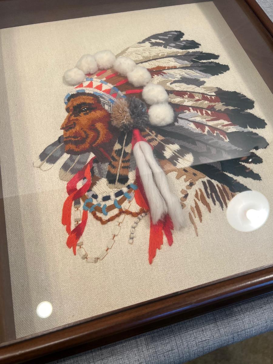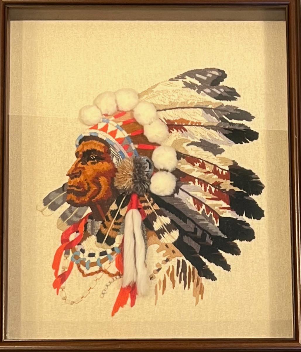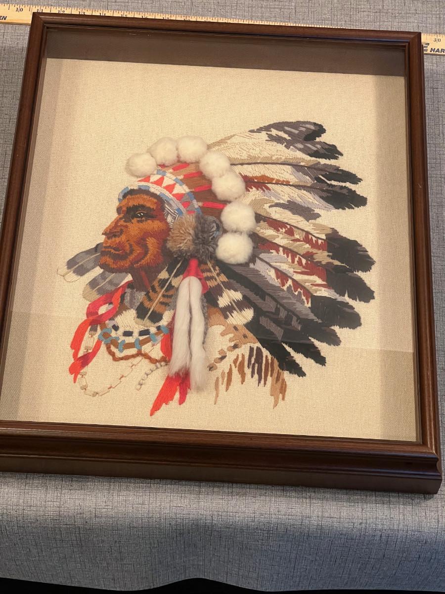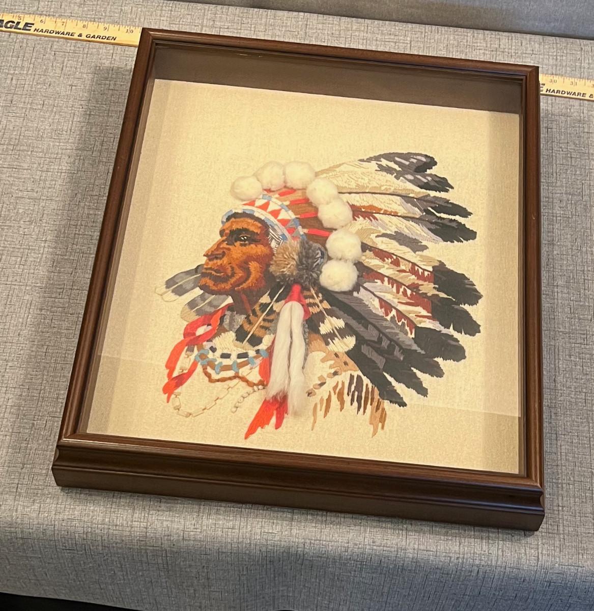 ART Native American Embroidered Framed Under glass