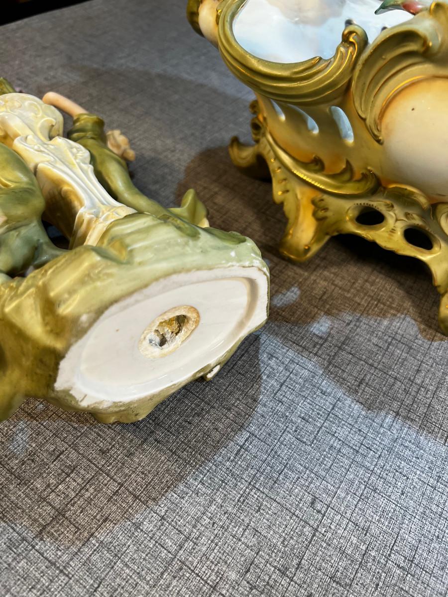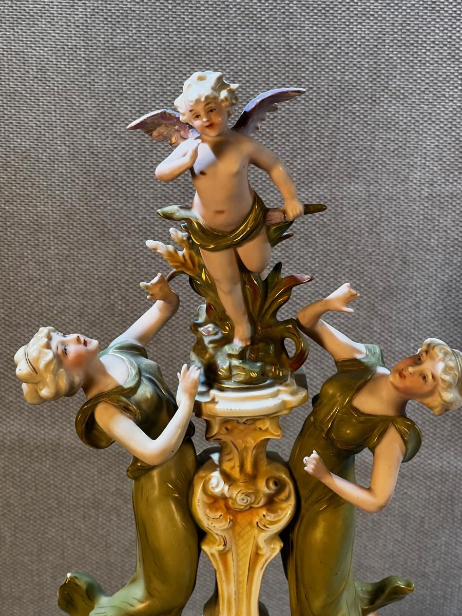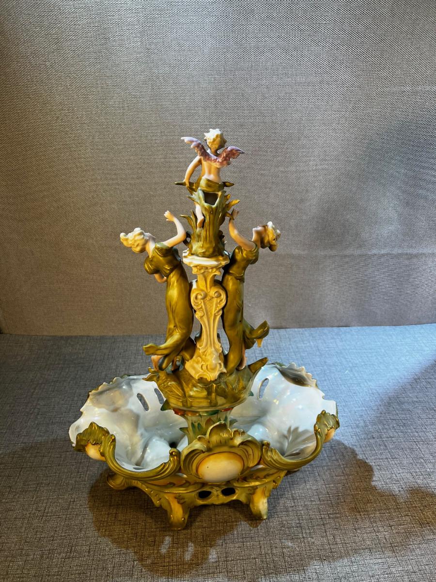 late 19th century ceramic centerpiece, German porcelain. Very good condition m=no visible damage. 18" tall 2 pieces.
