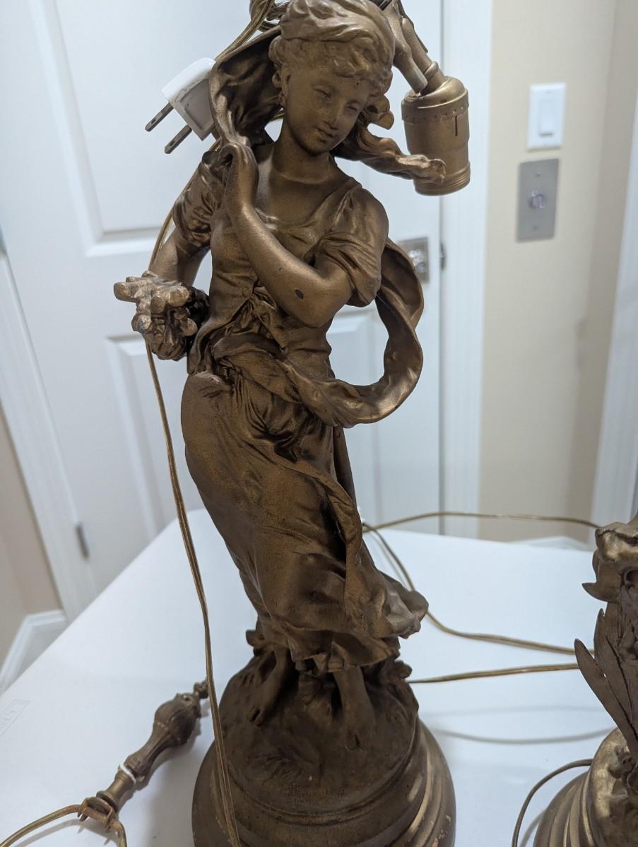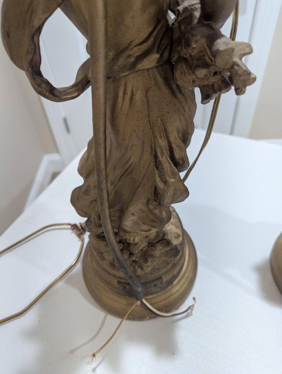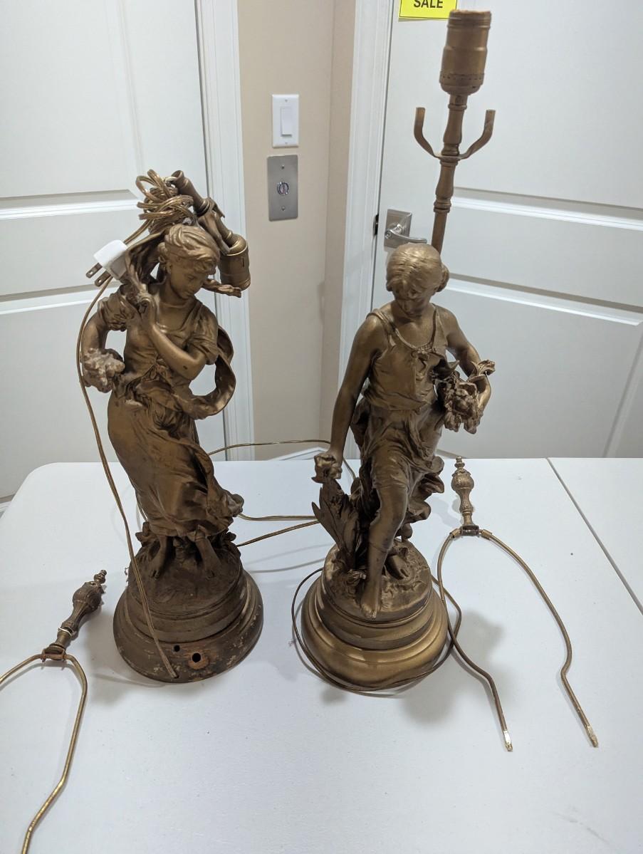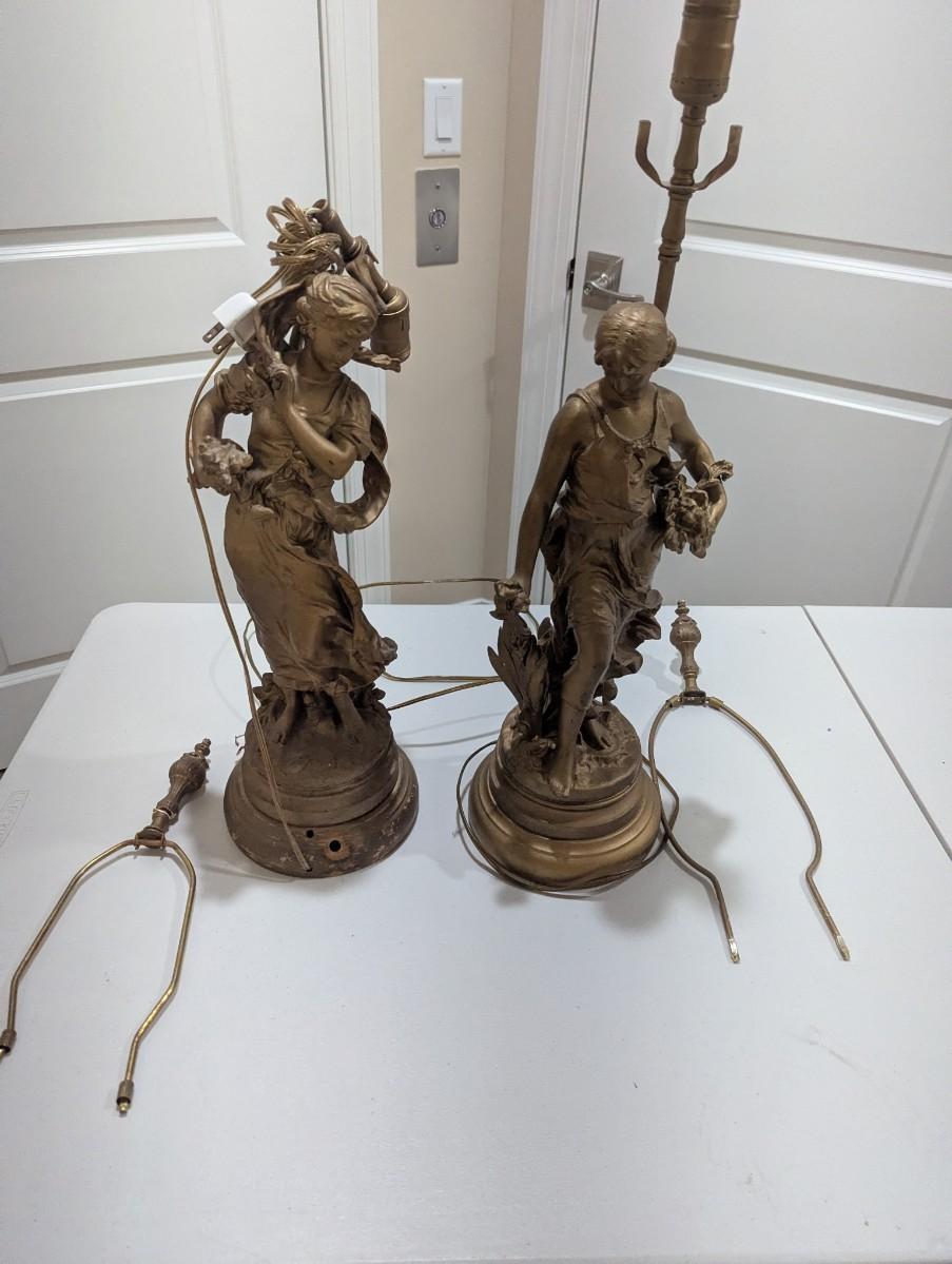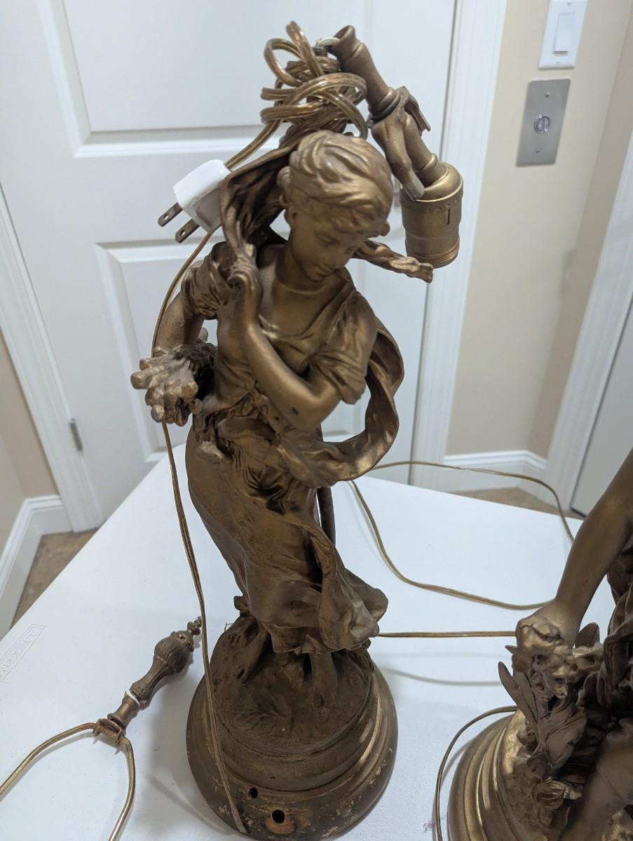 Lamps light arms are damaged and need repairing and electrical may need repair also. Figures themselves appear to be in good condition