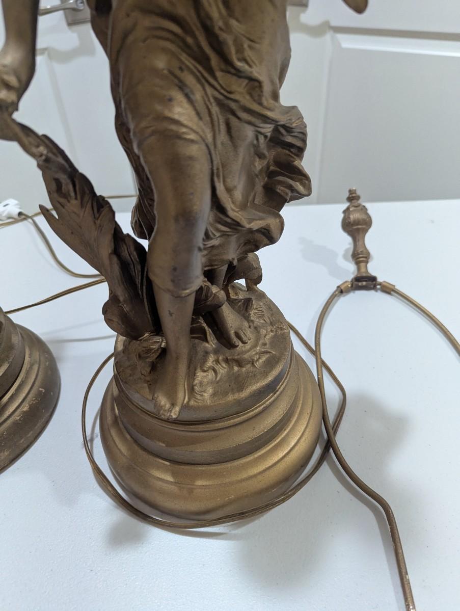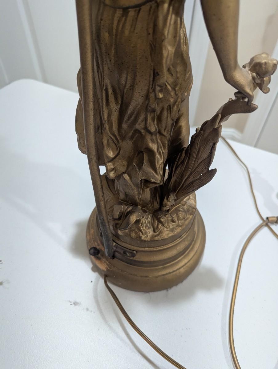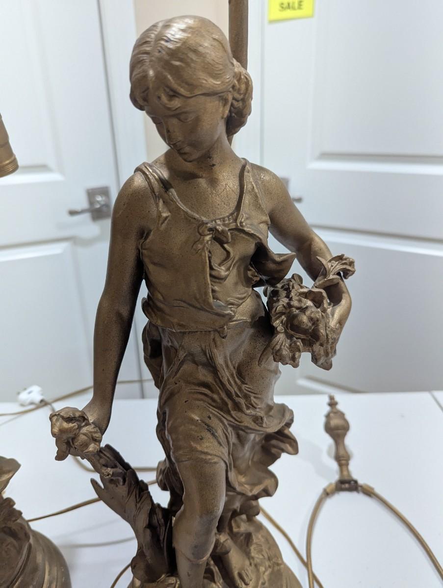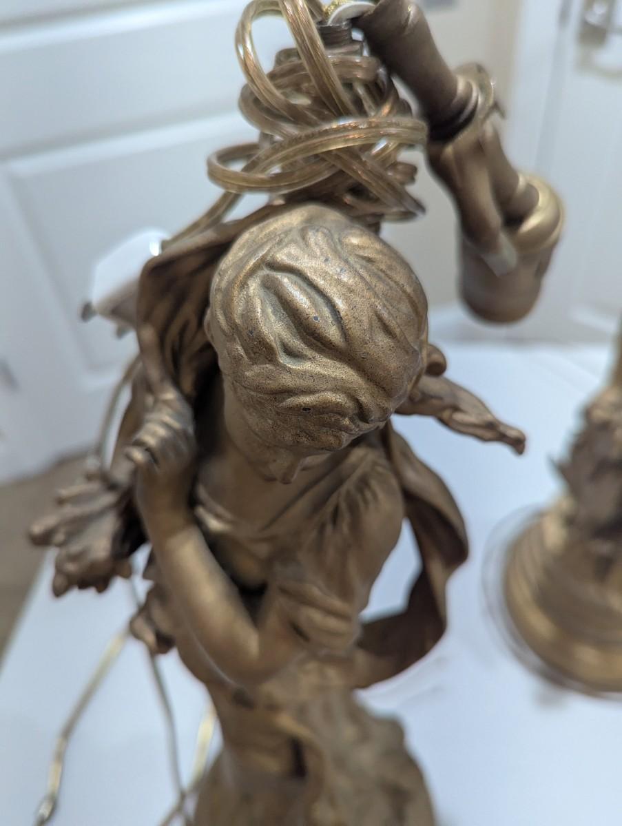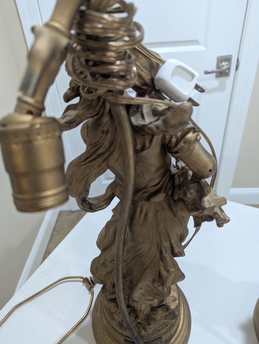Lamps light arms are damaged and need repairing and electrical may need repair also. Figures themselves appear to be in good condition