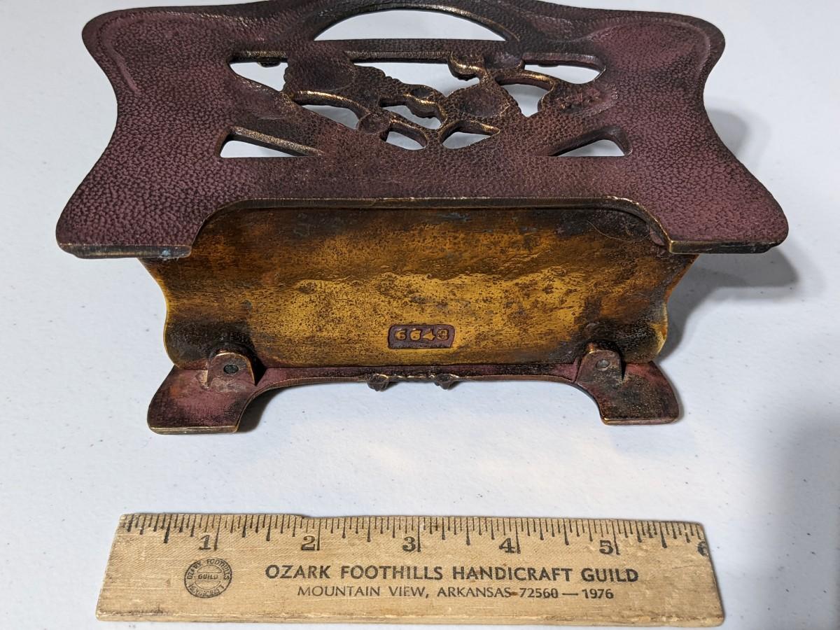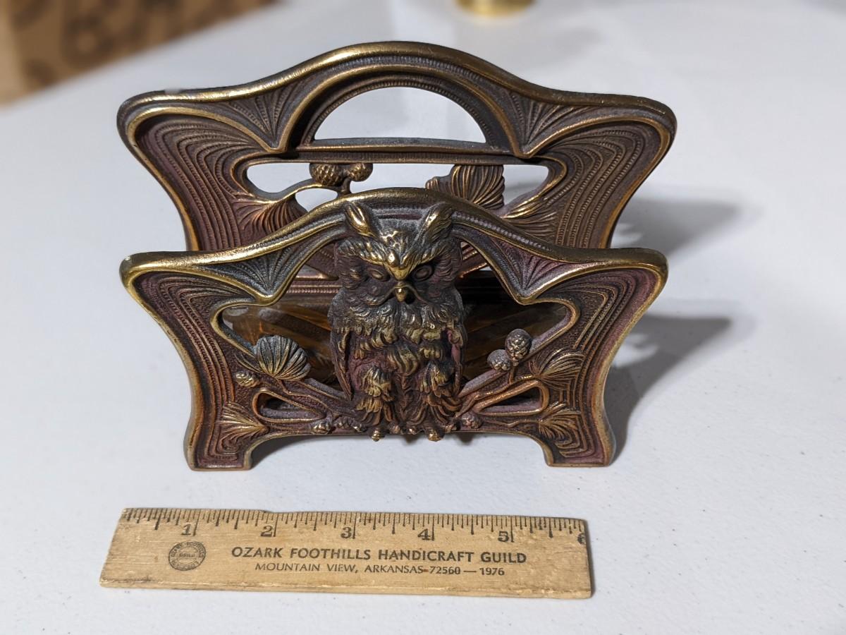 Art Nouveau Cast Metal Owl Pinecone Flowers Vintage Letter Holder