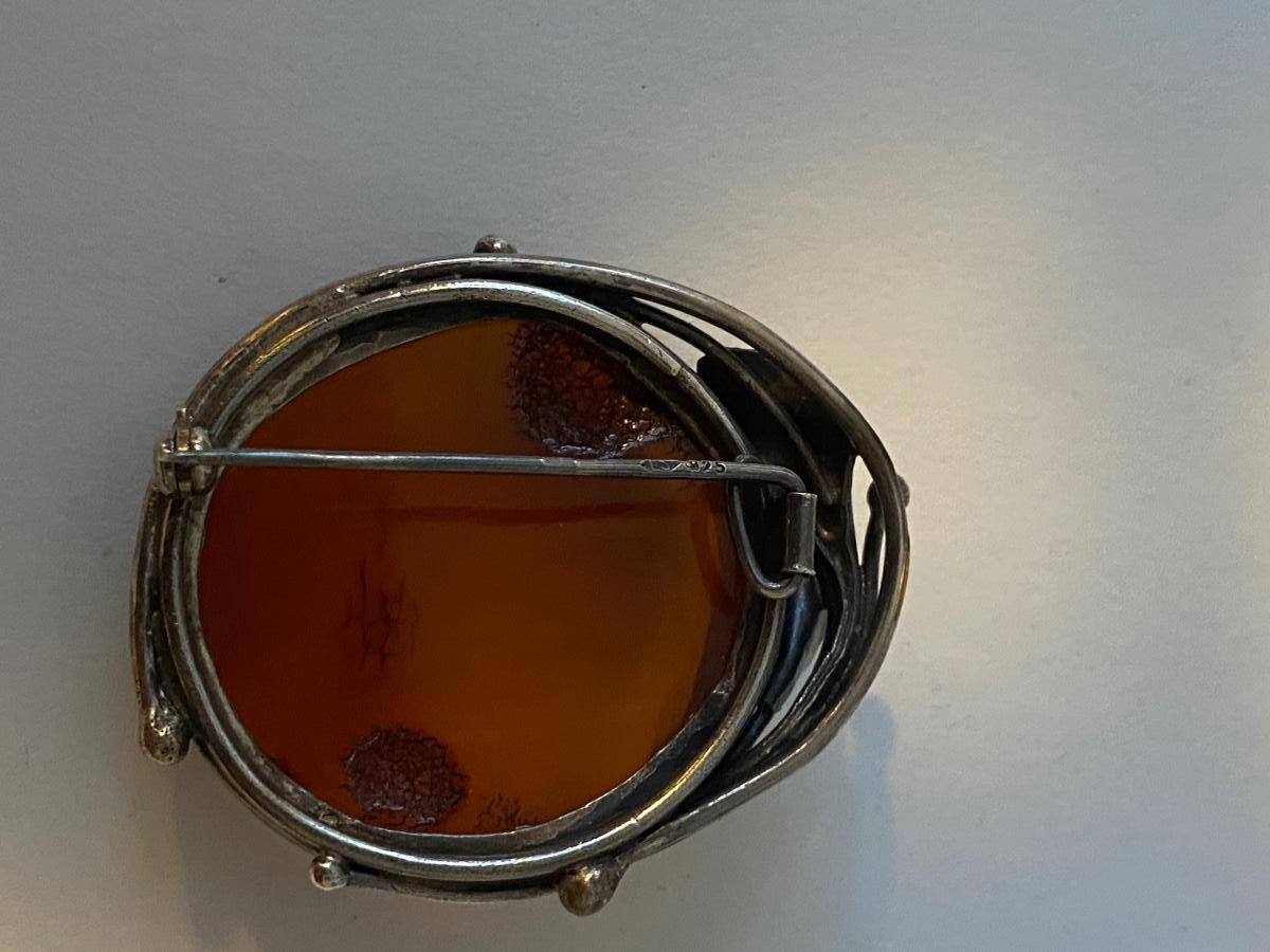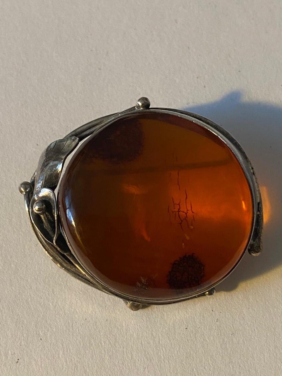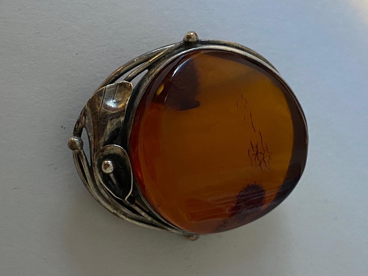 Art Nouveau Danish or polish sterling silver marked amber brooch