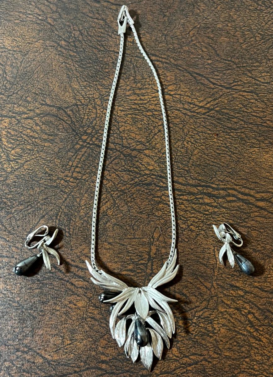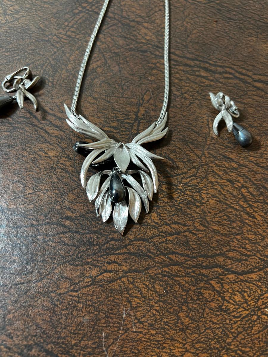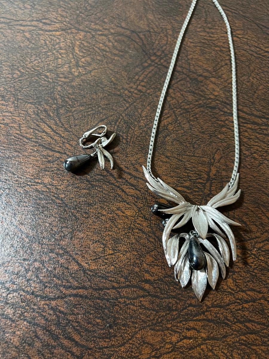 Neat Interesting Necklace and Matching Earing Teardrop Black Pearls