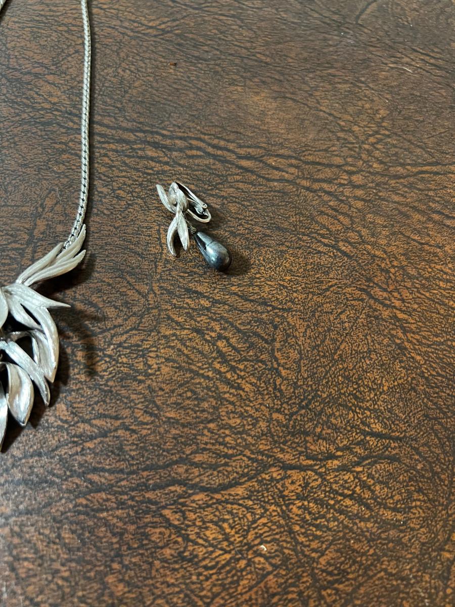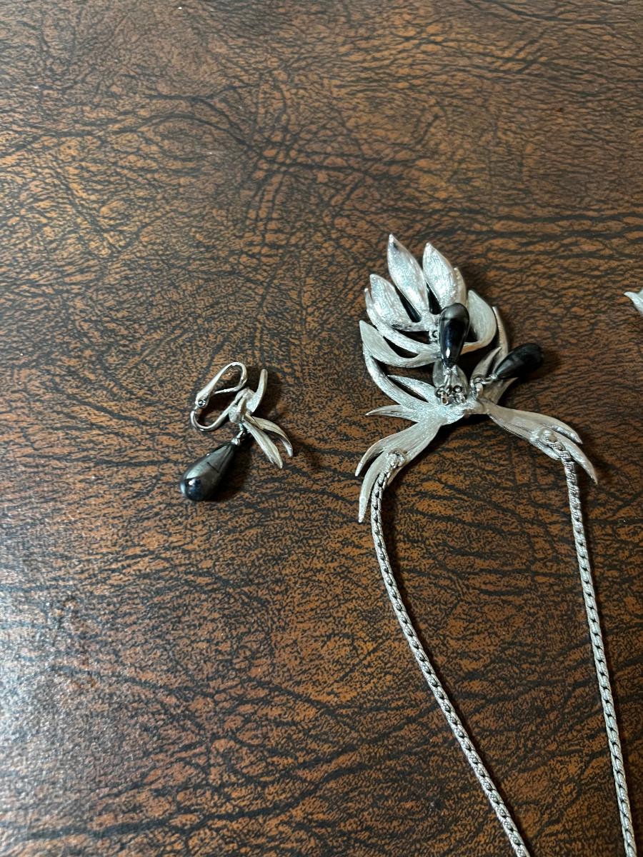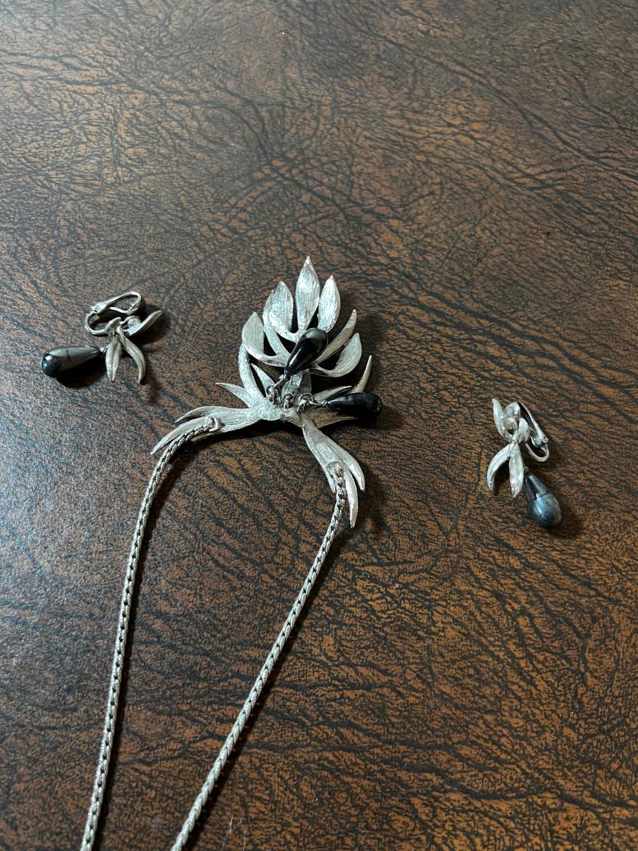 Neat Interesting Necklace and Matching Earing Teardrop Black Pearls