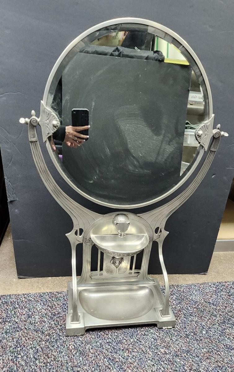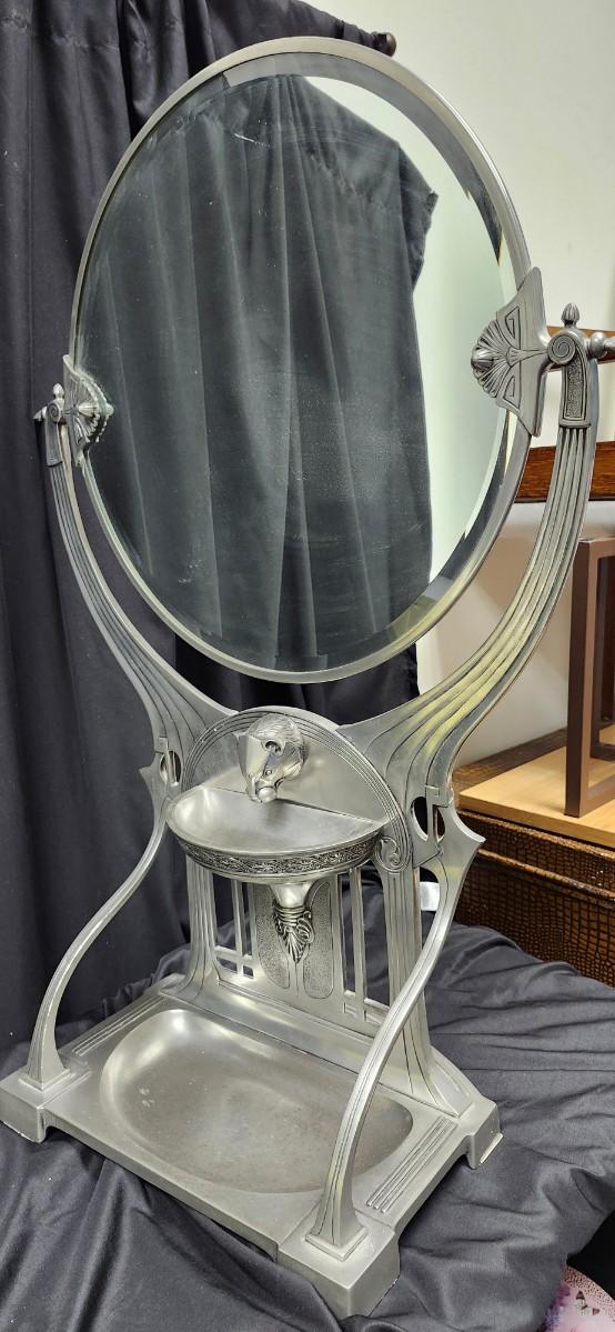 This is a lovely unique piece in silvered pewter about 30 inches tall.