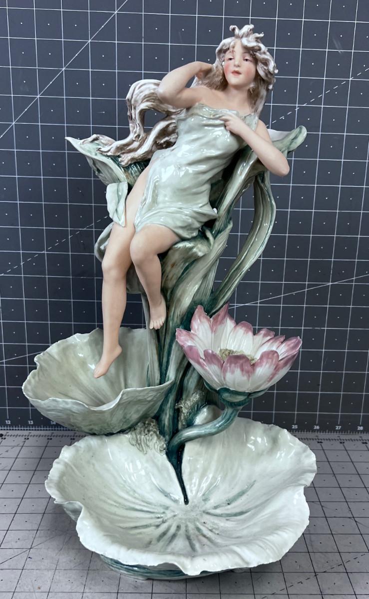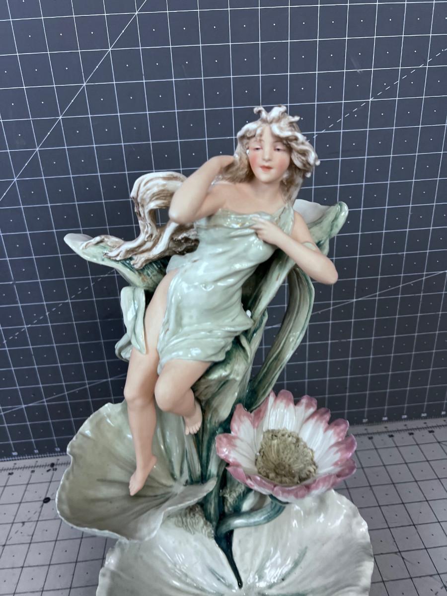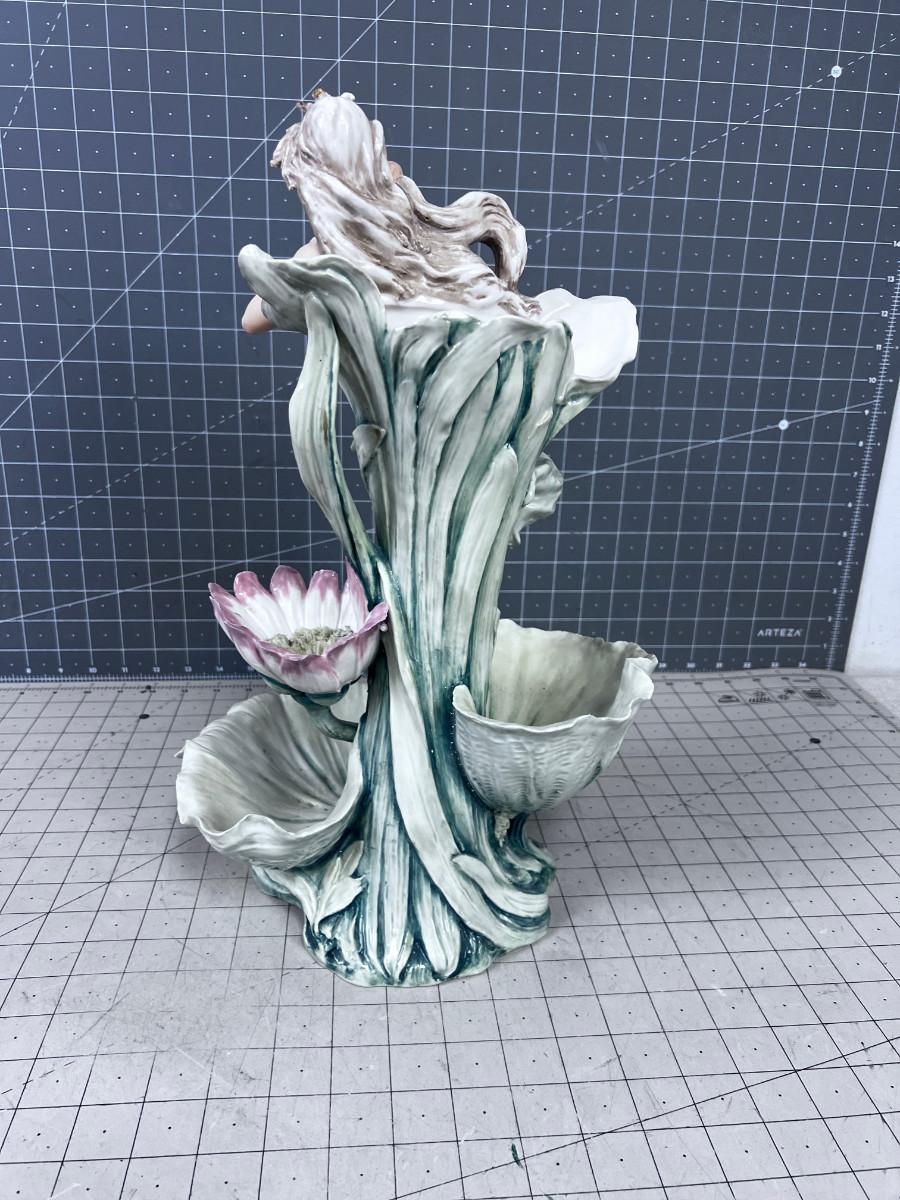 ART NOUVEAU Royal Dux Vase Fairy-Nymph with Flowers, Pink Triangles