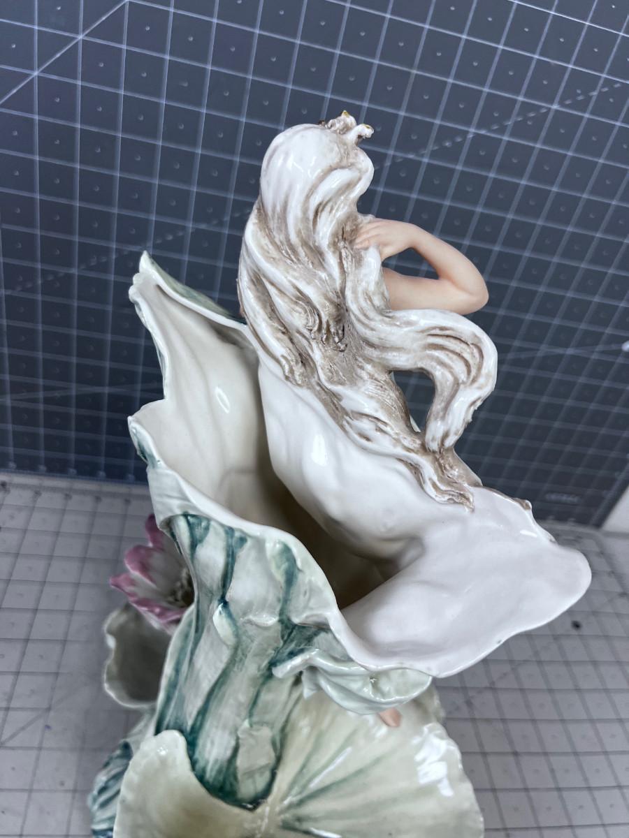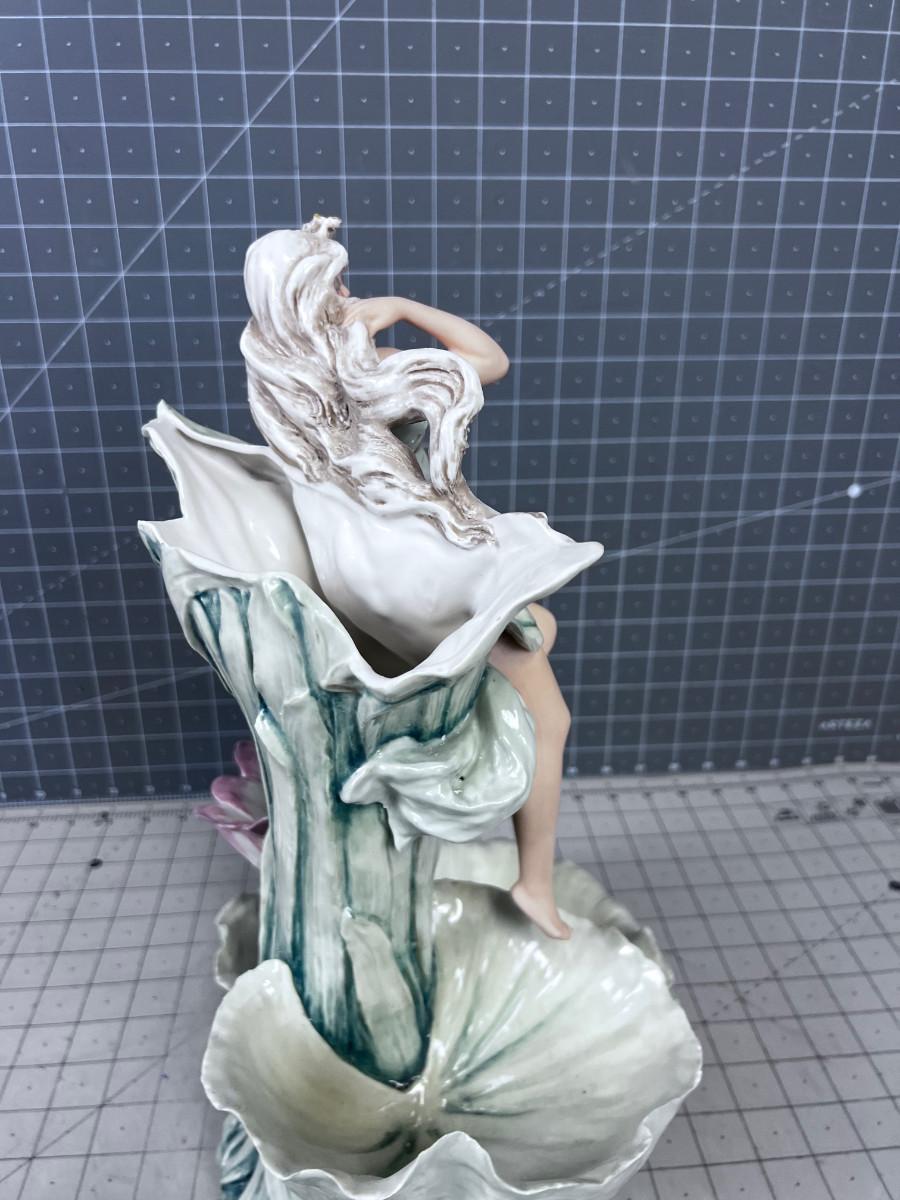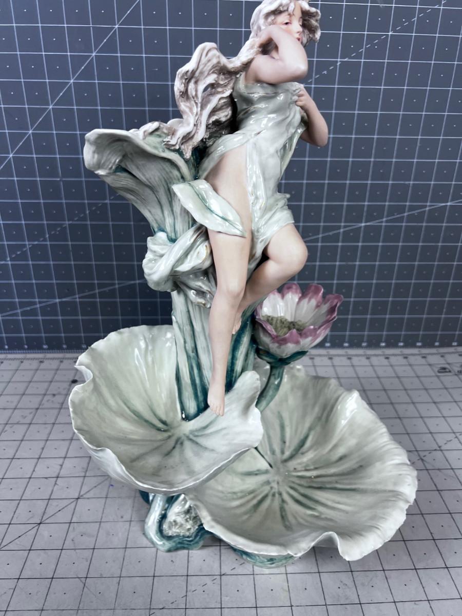 ART NOUVEAU Royal Dux Vase Fairy-Nymph with Flowers, Pink Triangles
