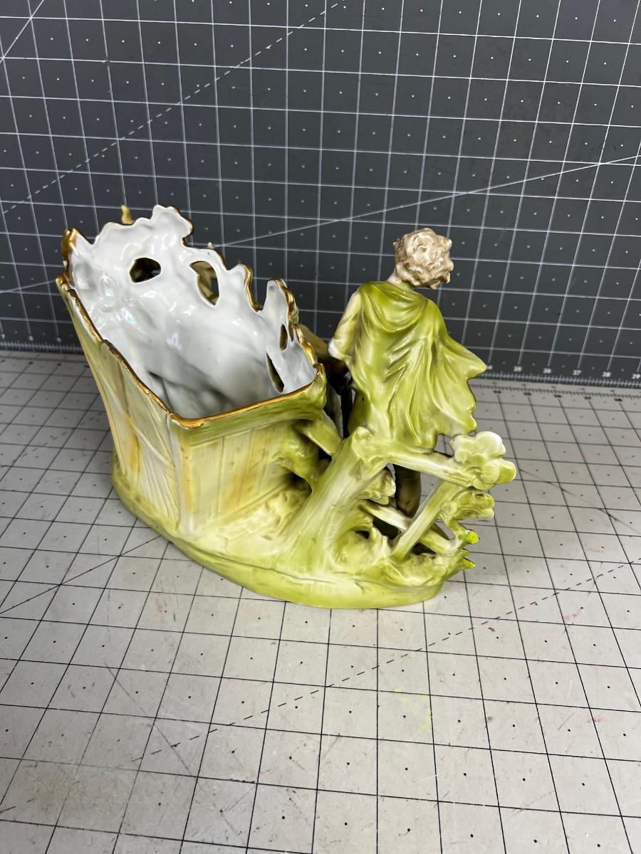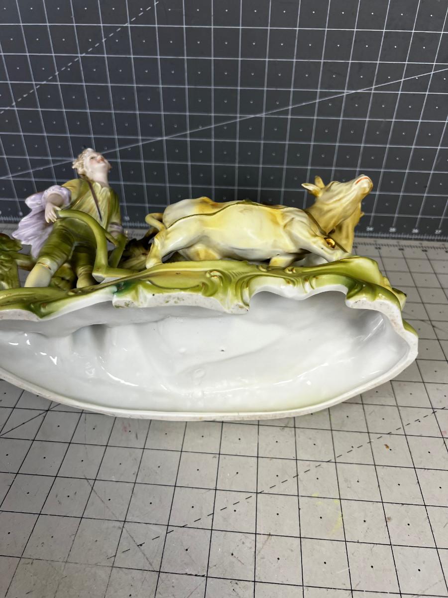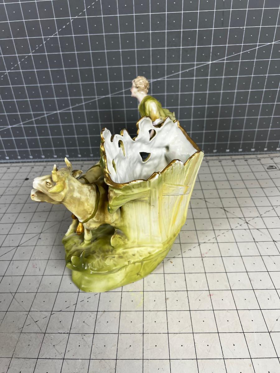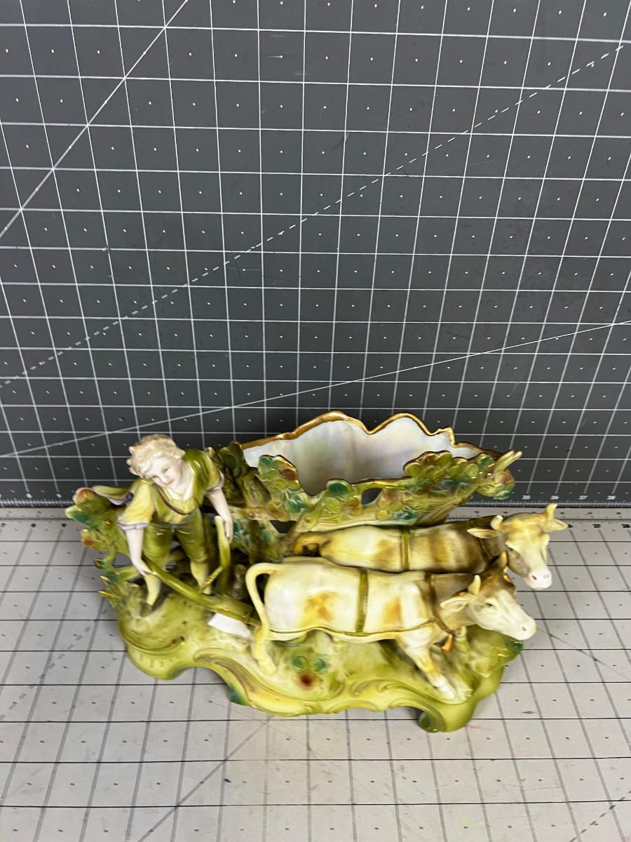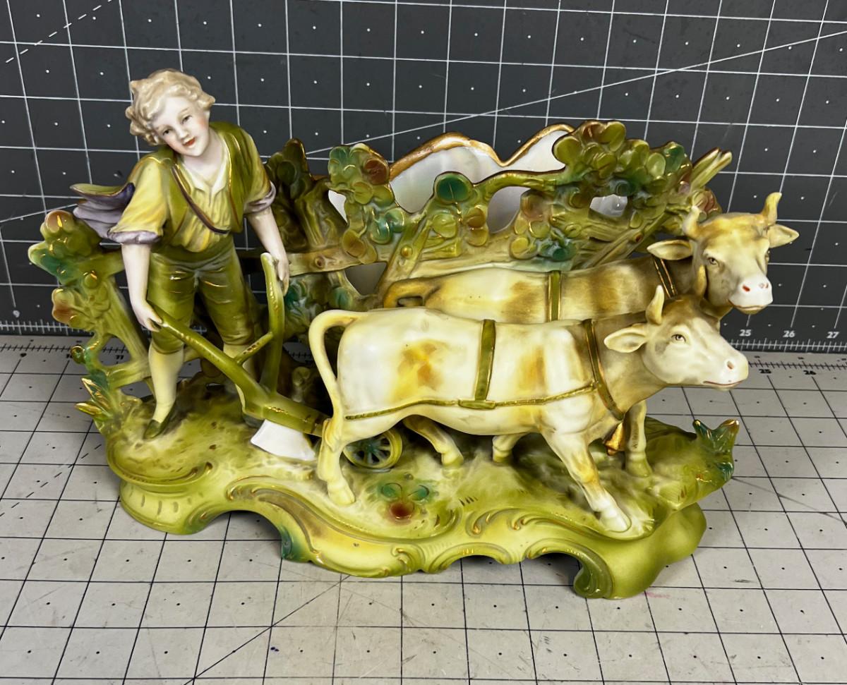 Art Nouveau Saxony Farm Oxen and Man Plowing