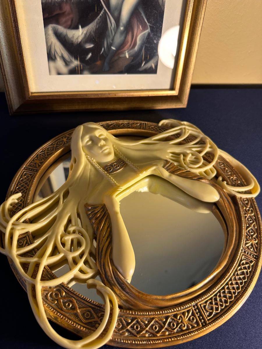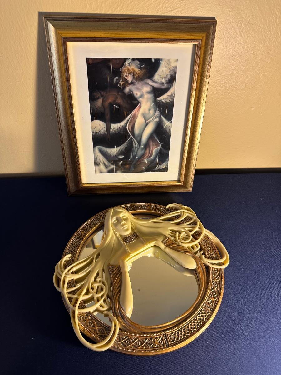 ART NOUVEAU STYLE FEMALE MIRROR, FRAMED CRYBABY THE ETERNAL SLUMBER ART
