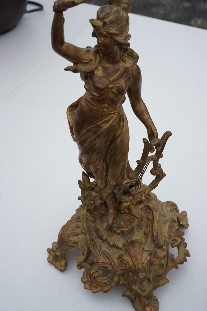ART NOUVEAU STYLE SPELTER LADY WITH GILDED COLORED FINISH