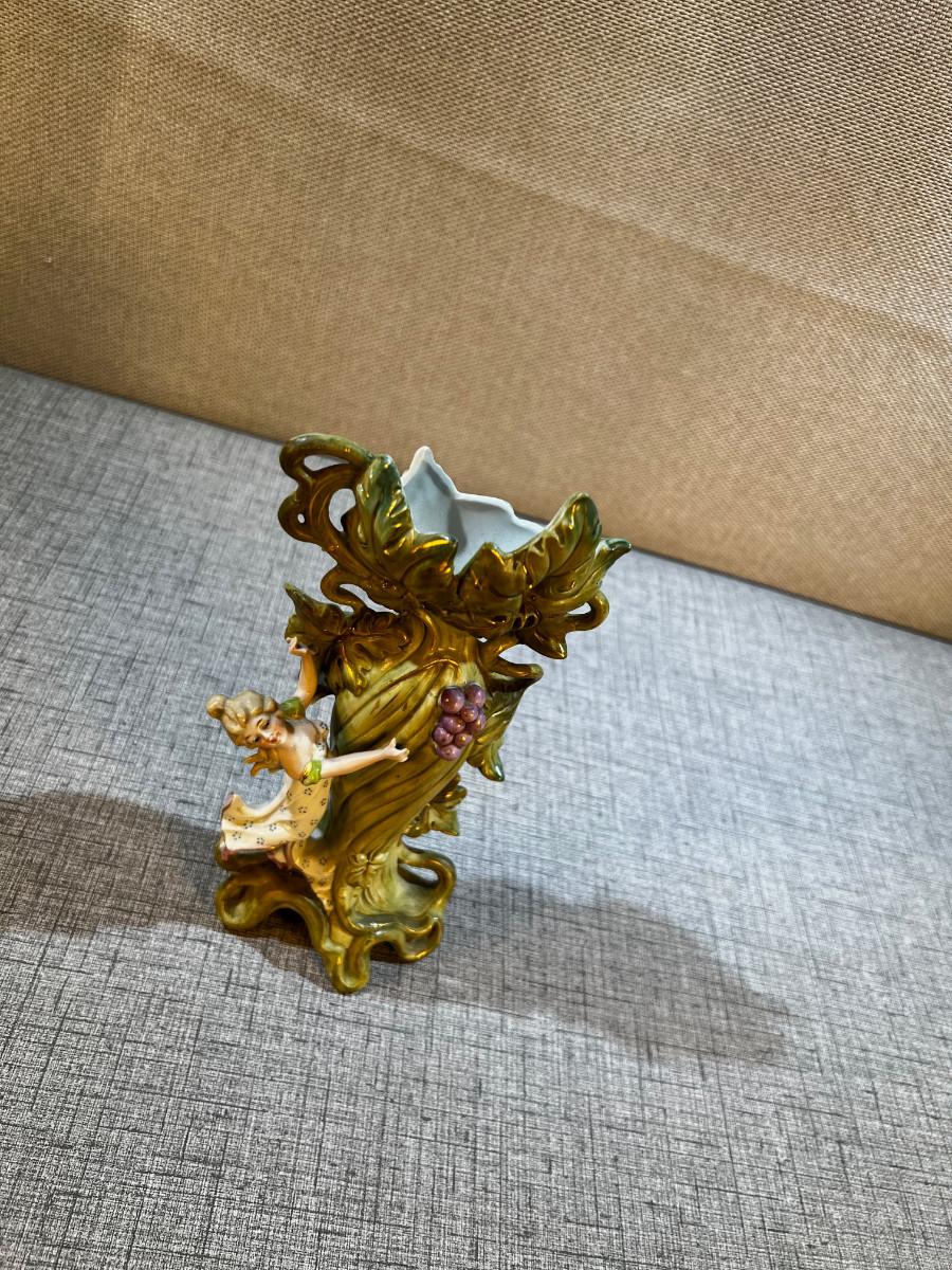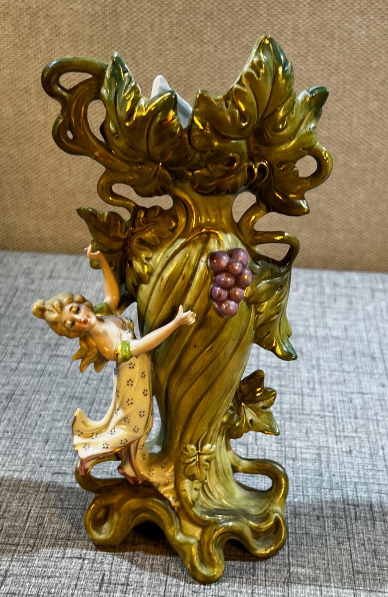 Art Nouveau Vase  Royal Dux or Saxony  Green with Grapes
