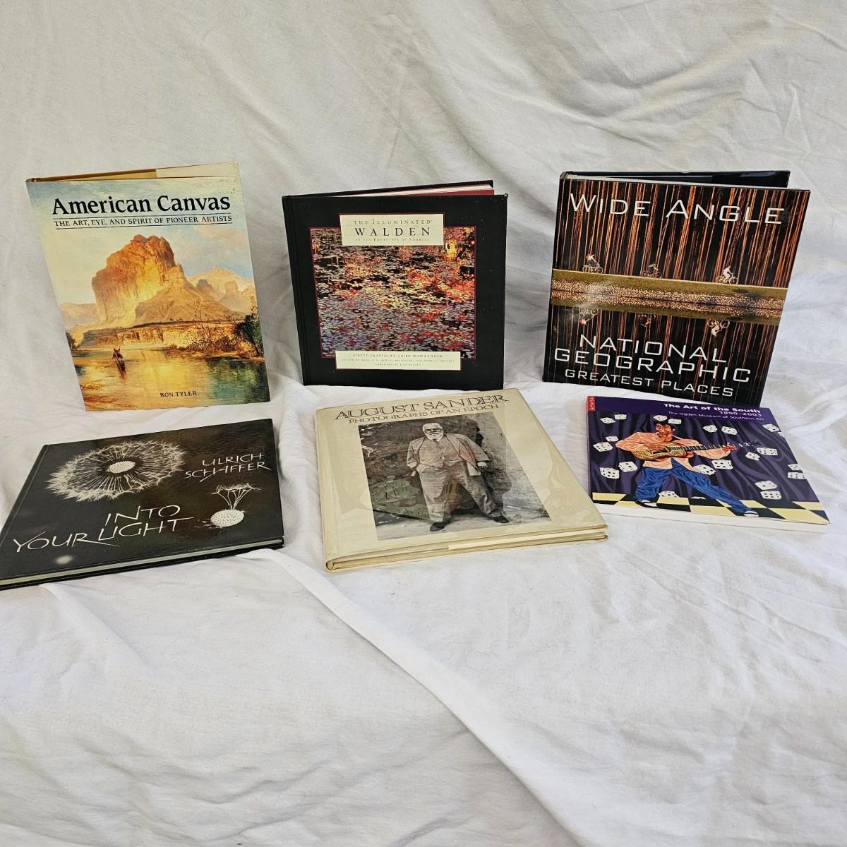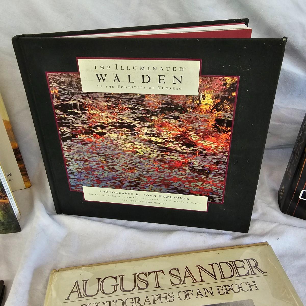 Six interesting volumes of photographs and artwork. One National Geographic greatest places volume. One illuminated edition of Walden Pond. A volume showcasing art from the pioneers in the west. And an interesting look at German life by August Sander from the early 1900's. Book has handwritten "first edition", but we cannot verify. See photos for details. Shipping available.