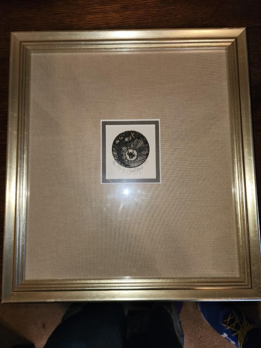14 by 13 in frame. Art itself is 3 by 3 in center.