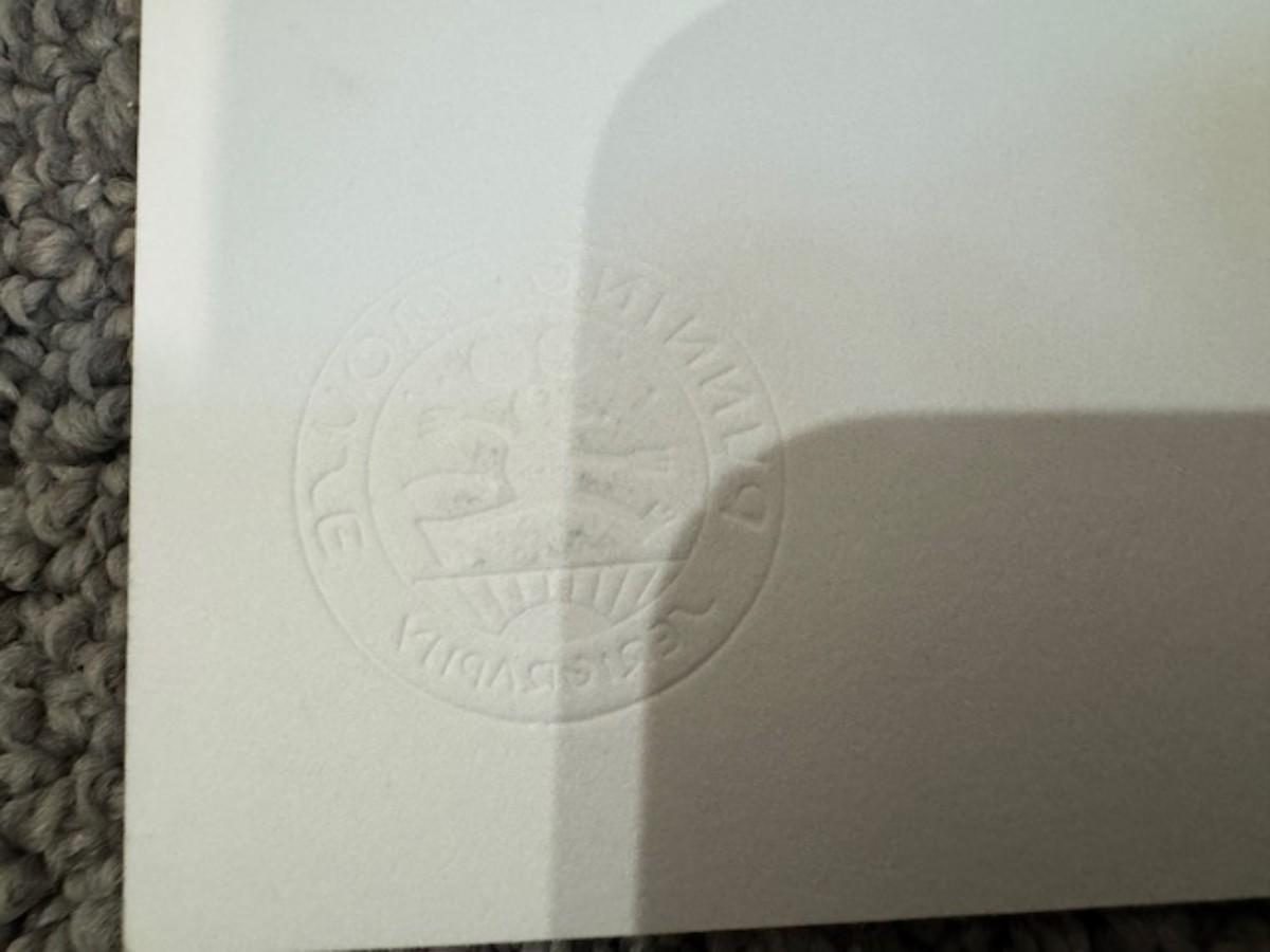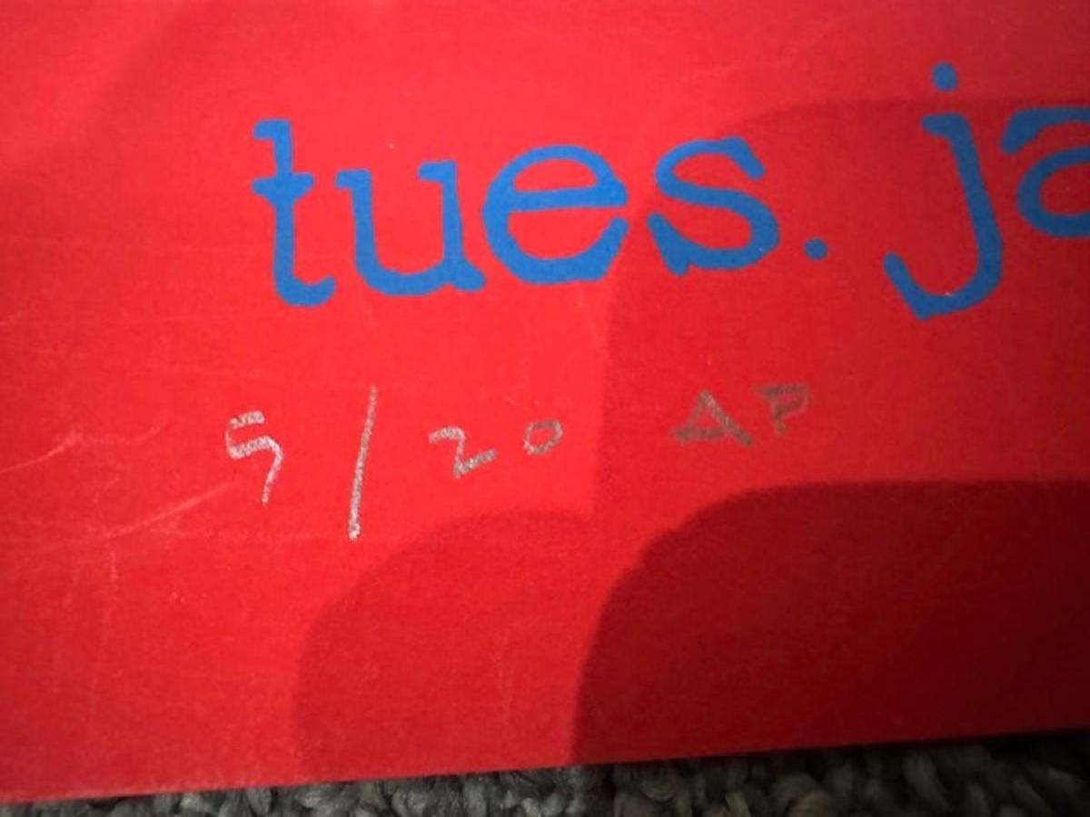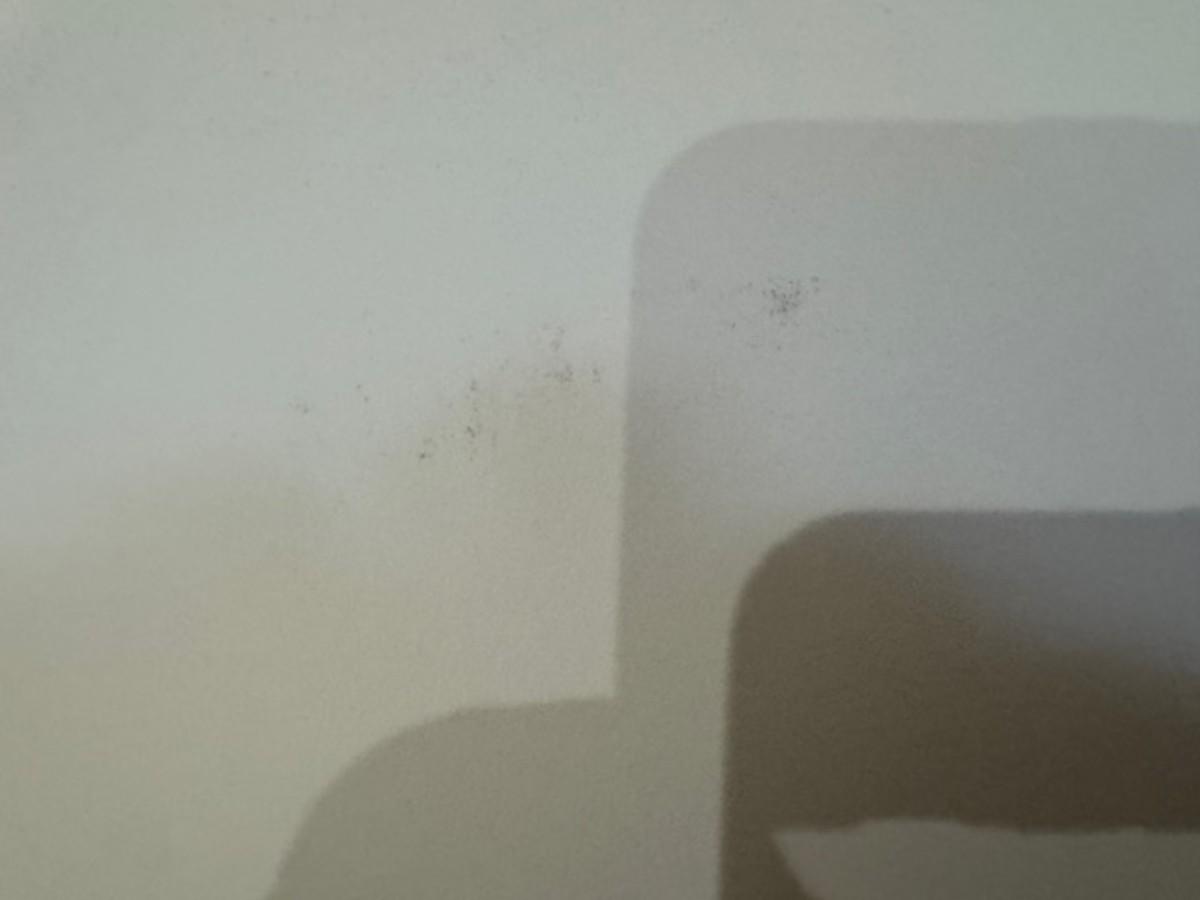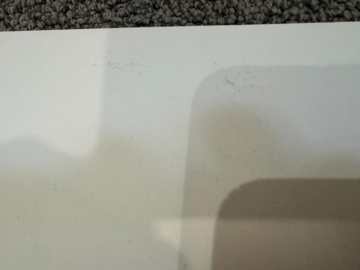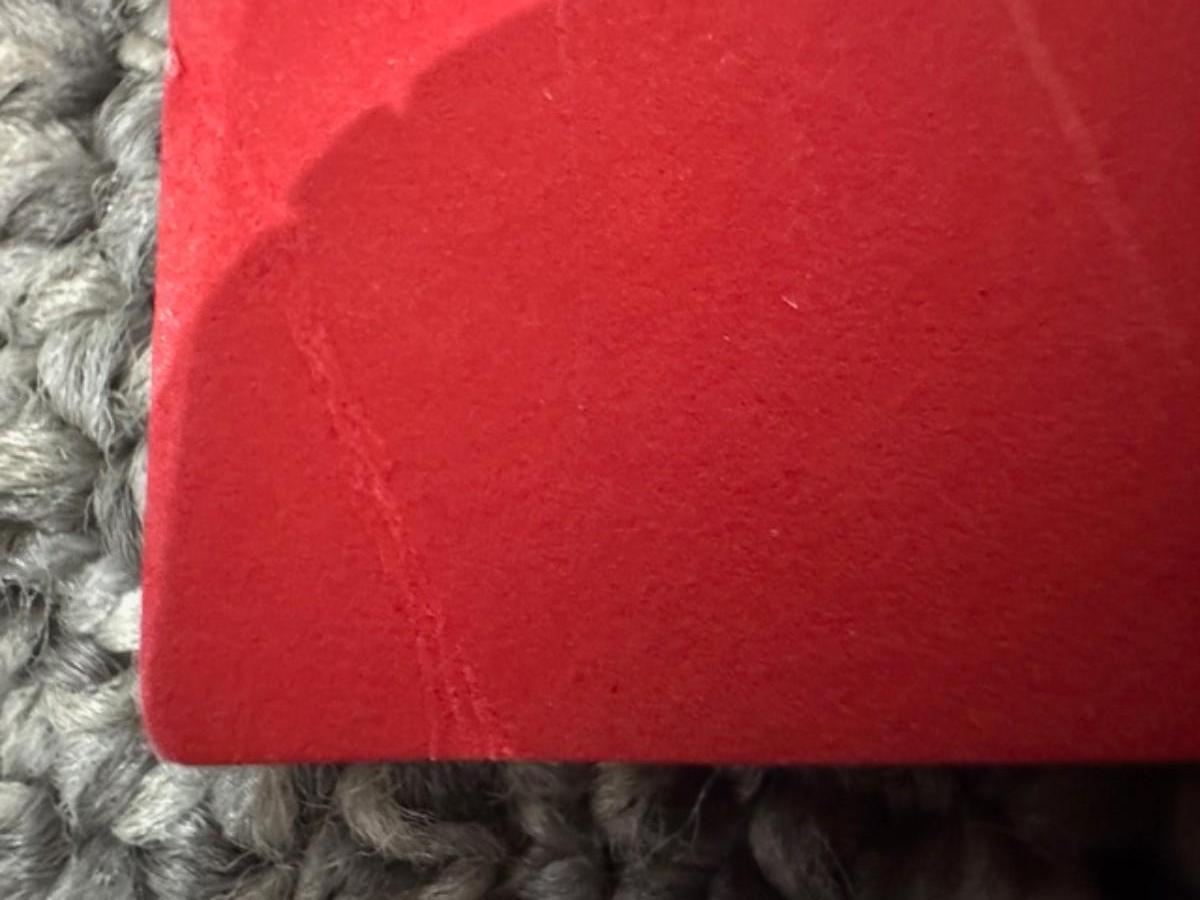 slight bent corners and a tiny bit of dirt on the back. See pictures.