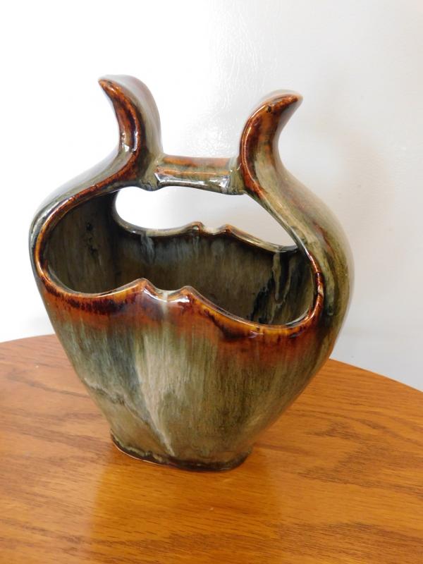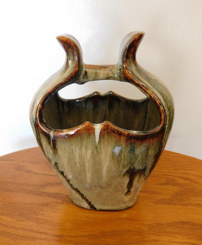 Art Pottery Basket Vase in very good condition. Unique and unusual